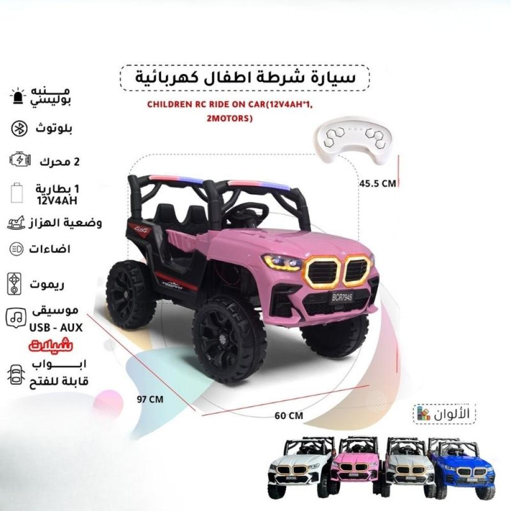 • سيارة كهربائية للأطفال بنظام التحكم عن بعد، بتصميم شرطي جذاب.