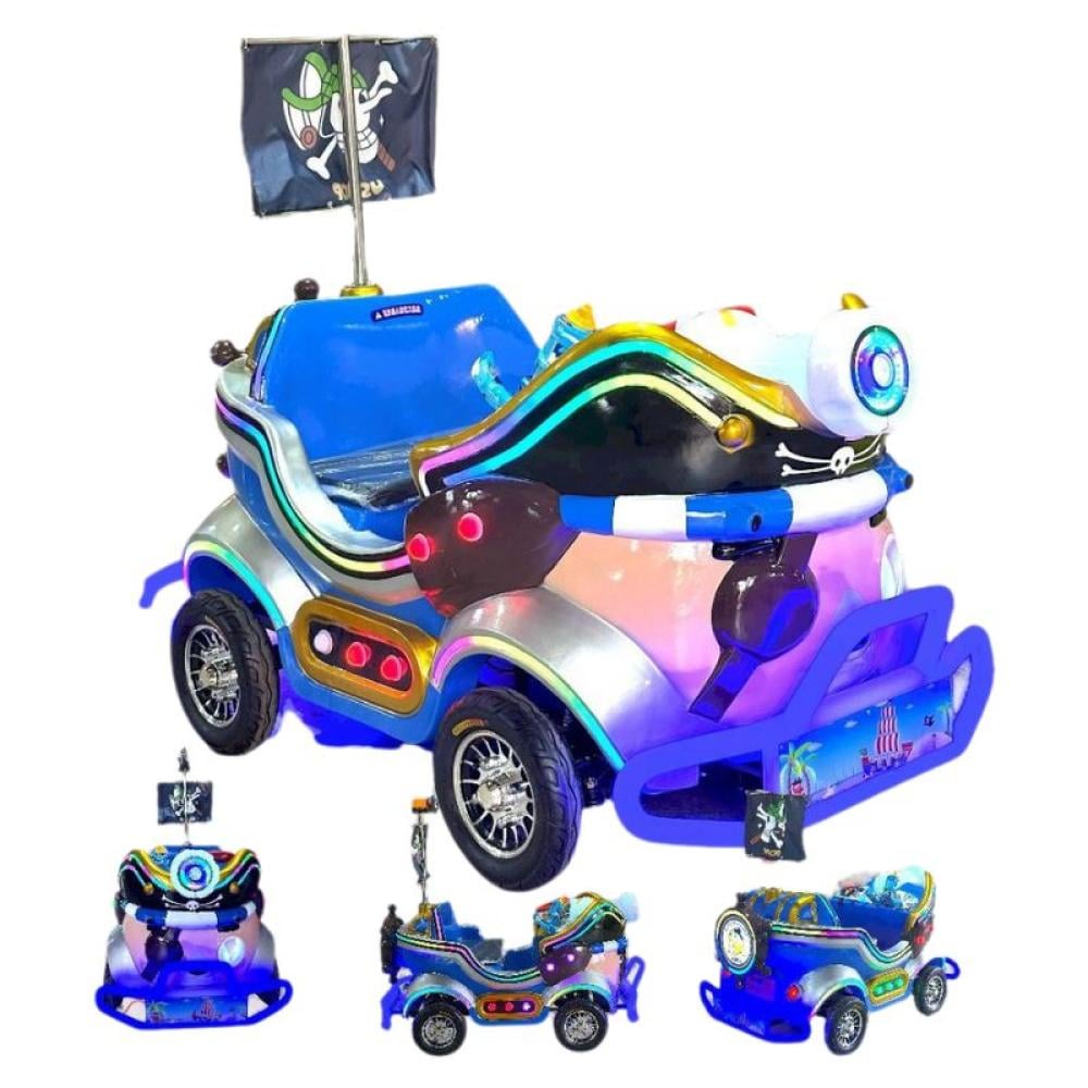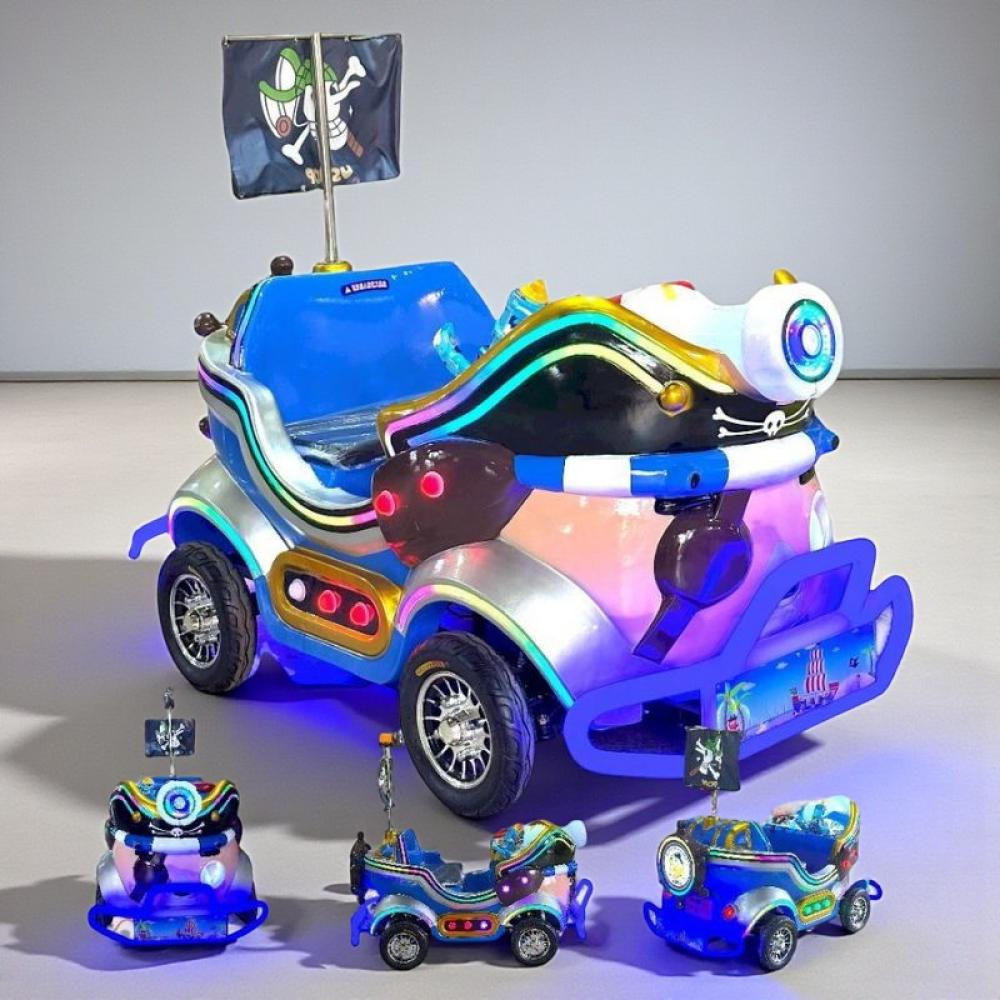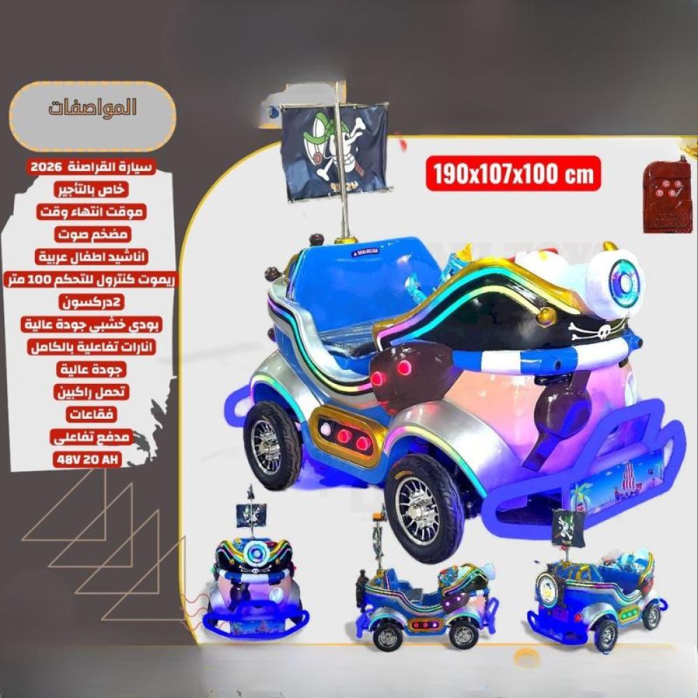 • سيارة كهربائية للأطفال بتصميم فريد ومميز على شكل سيارة قراصنة ملونة.