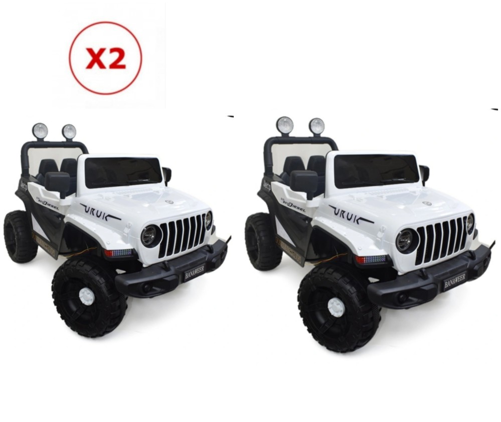 لا تفوت هذه الفرصة الرائعة! اجعل طفلك يعيش تجربة قيادة ممتعة وآمنة مع سيارتين جيب أطفال بتصميم مميز باللون الأبيض. اطلب الآن من متجر جوي بوكس من قسم ألعاب الأطفال ودعوا أطفالكم يستمتعون بالقيادة والمرح.