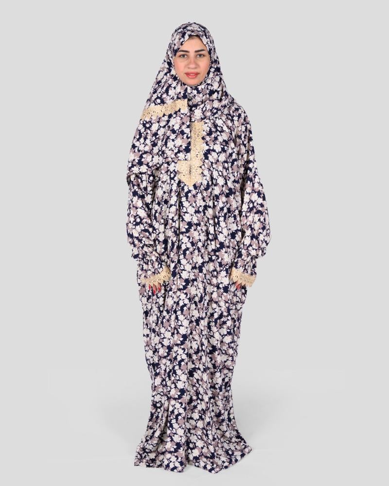 تألقي بلمسة من الأناقة والسكينة مع طقم الصلاة زهرة، المصمم خصيصًا ليمنحكِ الراحة والجمال في أوقاتك الروحانية. يتميز هذا الطقم بتصميم يجمع بين الأناقة والعملية، حيث يبرز بفضل نقوشه الدقيقة التي تضفي عليه فخامة لا مثيل لها. يتوفر هذا الطقم بلونين: اللون الأول يأتي باللون الأسود مع نقوش زهور صغيرة باللونين الأبيض والرمادي، مما يمنحكِ إطلالة كلاسيكية وأنيقة. اللون الثاني يأتي بلون كحلي داكن مع نقوش زهور باللونين الأبيض والبني الفاتح، ليضفي عليكِ لمسة من الجمال الطبيعي. في كلا الخيارين، يزدان الطقم بدانتيل فاخر باللون الذهبي الباهت يمتد على أطراف غطاء الرأس، والأكمام، ومنطقة الصدر. هذا الدانتيل يضيف لمسة من الرقة والأنوثة دون مبالغة، ويكمل تصميم النقوش الزهرية بشكل متناغم. الطقم مصنوع من خامة ناعمة وخفيفة، توفر الراحة والتهوية أثناء الصلاة، مما يجعله مثاليًا للاستخدام في جميع الفصول. تصميمه الواسع يوفر لكِ حرية الحركة الكاملة، بينما القماش المريح يجعلكِ تشعرين بالراحة في كل خطوة. طقم زهرة هو الخيار الأمثل للمرأة التي تبحث عن الجودة والتصميم الراقي لأداء صلاتها في راحة تامة. تعليمات العناية: يُغسل باليد أو في الغسالة بماء بارد. لا تستخدم المبيض. يُكوى على درجة حرارة منخفضة.