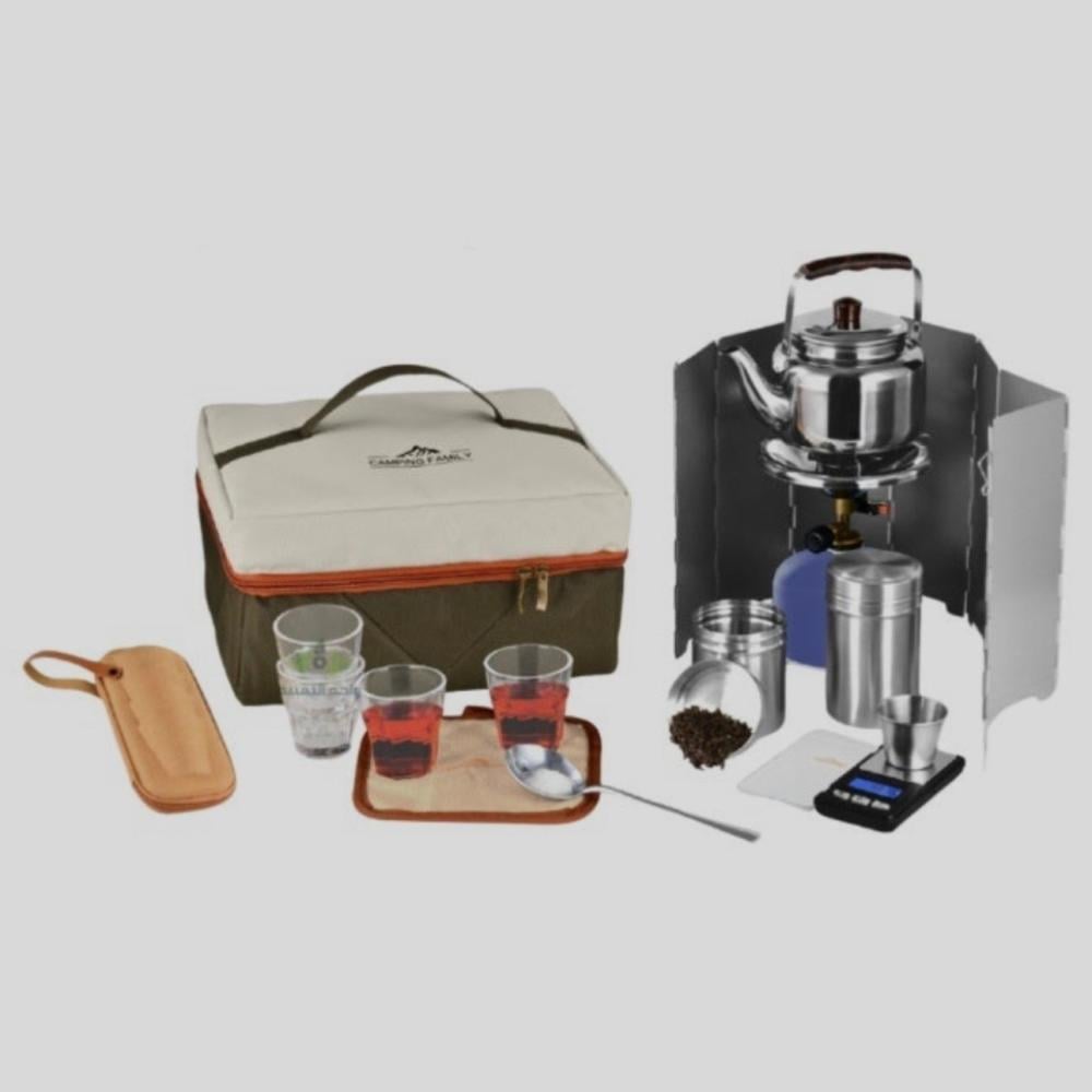عزبة الشاي المتكاملة للرحلات - تصميم مدمج وعملياستمتع بمذاق الشاي الأصيل في قلب الطبيعة مع هذه العزبة المتكاملة، التي تجمع لك كل أدوات التحضير في حقيبة واحدة منظمة. صُممت هذه المجموعة لتلبي احتياجات عشاق الكشتات والرحلات الذين يبحثون عن الأناقة والعملية في آن واحد.عن المنتج:تأتي العزبة بحقيبة قماشية متينة بلونين (الزيتي والابيض) لتناسب أجواء البر، وهي مزودة بسحاب قوي ومقبض علوي مريح لسهولة الحمل. تحتوي المجموعة على طقم متكامل.المحتويات:• ابريق ستيل عالي الجودة ومقاوم للصدأ، مصمم لتحمل الاستخدام المباشر على النار، مع مقبض متين يضمن سهولة الاستخدام.• موقد غاز صغير، مع حاجز رياح معدني (قابل للطي)، وهو ضروري لضمان تركيز الحرارة وسرعة التسخين في الأجواء المفتوحة.• عدد (2) علب الشاي والسكر من الستانلس ستيل، مثالية لحفظ المكونات الأساسية مثل الشاي، و السكر بشكل محكم لحماية النكه.• عدد 4 بيالات شاي شفافة ومتينة مع حافظه لها.• ميزان رقمي صغير لوزن دقيق للشاي ، لضمان المذاق المثالي.• ملعقة طويلة مع مكيل صغير لوضع الشاي والسكر.• بيز .المميزات الرئيسية:• تنظيم مثالي: توفر الحقيبة حماية فائقة للأدوات وتمنعها من التحرك أو الكسر أثناء التنقل.• جودة عالية: الأدوات مصنوعة من مواد مقاومة للصدأ والحرارة لتدوم معك طويلاً.• شاملة لكل الاحتياجات: من غلي الماء وحتى ميزان القياس، كل شيء جاهز للاستخدام الفوري.• حجم مثالي: أبعاد مدروسة بعناية لتكون خفيفة الوزن ولا تأخذ مساحة كبيرة في سيارتك.أبعاد المنتج:• الطول: 30 سم• العرض: 25 سم• الارتفاع: 15 سم💡 نصيحة إضافية: هذه العزبة تعتبر هدية مثالية لمحبي الرحلات والمغامرات الخارجية!