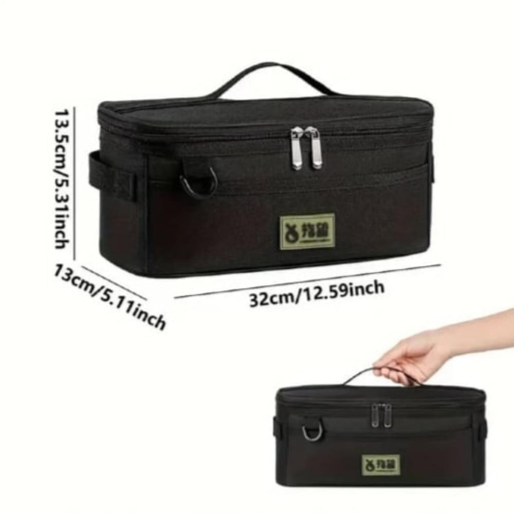 حقيبة تخزين متعددة الاستخدامات.الميزات الرئيسية: * مساحة تخزين واسعة: توفر الحقيبة مساحة كافية لتنظيم وحمل مجموعة متنوعة من الأغراض، مما يجعلها مثالية للاستخدام في الهواء الطلق مثل التخييم أو الرحلات أو حتى الاستخدام اليومي. * تصميم متين: مصنوعة من مواد عالية الجودة تضمن تحمل الاستخدام اليومي والظروف الخارجية. * سهولة الحمل: مزودة بمقابض قوية لسهولة الحمل والنقل. * تصميم متعدد الاستخدامات: يمكن استخدامها لتخزين مجموعة متنوعة من الأشياء مثل أدوات شاي أو قهوة أو ادوات طعام أو أدوات اخرى. * أبعاد مثالية: * الطول: 32 سم / 12.59 بوصة * العرض: 13.5 سم / 5.31 بوصة * الارتفاع: 13 سم / 5.11 بوصةملاحظات إضافية: * الحقيبة قابلة للطي لسهولة التخزين عندما لا تكون قيد الاستخدام. * تتوفر الحقيبة بلون الأسود كما هو موضح في الصورة.