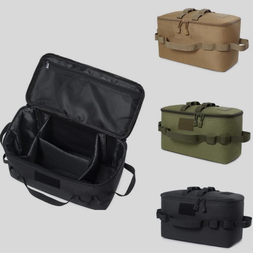 هذا المنتج عبارة عن حقيبة تخزين متعددة الأغراض مخصصة لتنظيم معدات التخييم أو الأدوات الشخصية. الوصف:• المواد والتصميم: مصنوعة من مواد متينة لتحمل الاستخدام الشاق في الرحلات الخارجية.• الأبعاد:• الطول: 34 سم (13.4 بوصة).• العرض: 17 سم (6.7 بوصة).• الارتفاع: 19 سم (7.5 بوصة).• المميزات الداخلية:• تحتوي على فواصل داخلية قابلة للتعديل لتنظيم الأغراض بشكل مريح.• جيب شبكي بسحاب في الغطاء العلوي لتخزين الأغراض الصغيرة مثل الأدوات متعددة الاستخدامات.• المميزات الخارجية:• مزودة بمقبض متين وسهل الحمل.• سحاب قوي للإغلاق الآمن.• الاستخدامات:• يمكن استخدامها لحمل أدوات الشاي او معدات الطبخ الصغيرة مثل مواقد الغاز وأواني الطبخ.• مناسبة لتخزين العلب الصغيرة مثل عبوات الوقود، أو معدات الطوارئ والأدوات. مثالية لعشاق التخييم والتنظيم، وتتميز بسهولة الحمل والحفاظ على الأغراض بشكل مرتب وآمن.