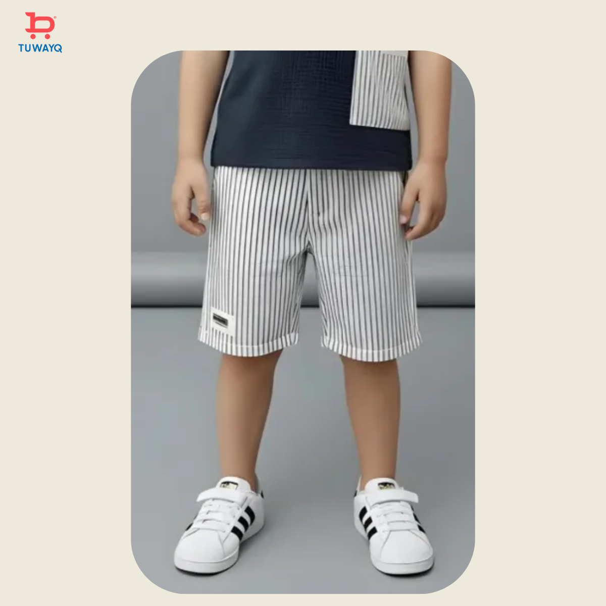 خلي طفلك يعيش أناقة الصيف بخفة وراحة مع هذا الشورت المخطط العصري 🤍💙