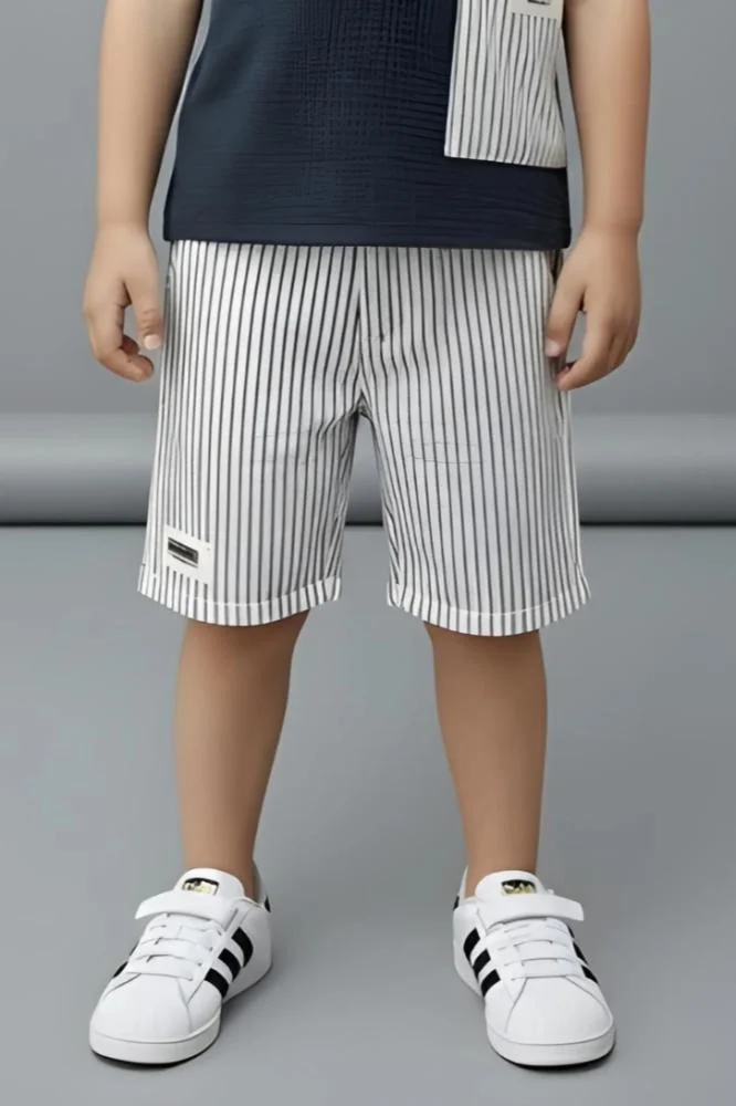 اسم المنتج: شورت ولادي مخطط أبيض وكحلي