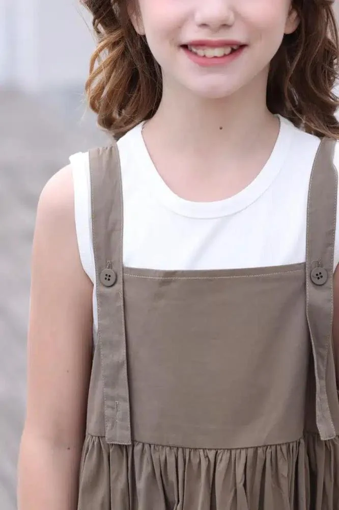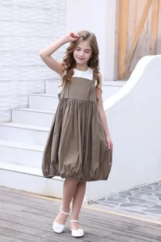 فستان شيال بناتي أنيق باللون البني، يأتي مع بدي أبيض ليكمل إطلالة طفلتك بأسلوب عصري وجميل. هذا الفستان من العيسائي للأطفال مصمم خصيصاً للفتيات من عمر 2 إلى 12 سنة، ويمتاز بتصميمه العملي والمريح الذي يسمح بحرية الحركة ويضفي لمسة جمالية أنيقة. يتميز الفستان بقصة واسعة عند الخصر مع حمالات عريضة تضيف لمسة عصرية، مما يجعله خياراً مثالياً لمختلف المناسبات سواء اليومية أو الخاصة.