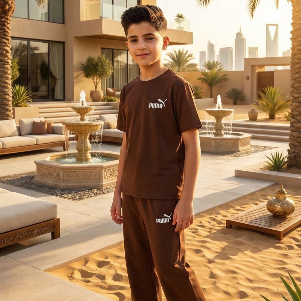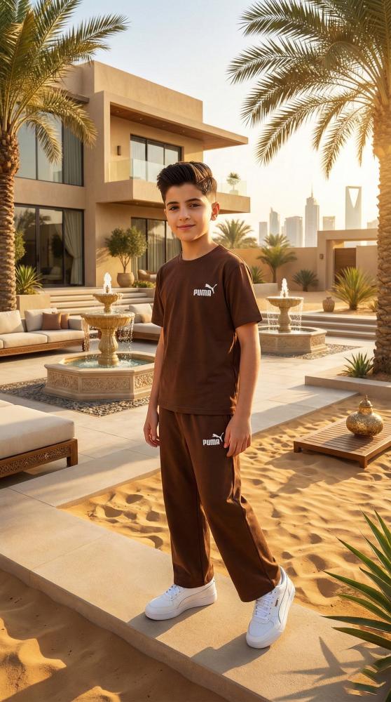 • يجمع هذا الطقم بين التصميم الرياضي العملي واللون البني الدافئ الذي يعكس فخامة الطبيعة، مما يمنح طفلك إطلالة متميزة وجذابة في مختلف المناسبات. صُمم القماش بعناية ليوفر راحة قصوى وحرية في الحركة، مع شعار بوما الأبيض الذي يضفي لمسة من الحيوية والتباين العصري. هذا التنسيق هو الخيار المثالي لمن يبحث عن مظهر أنيق وبسيط في آن واحد، سواء في النزهات العائلية أو الأوقات الترفيهية.
