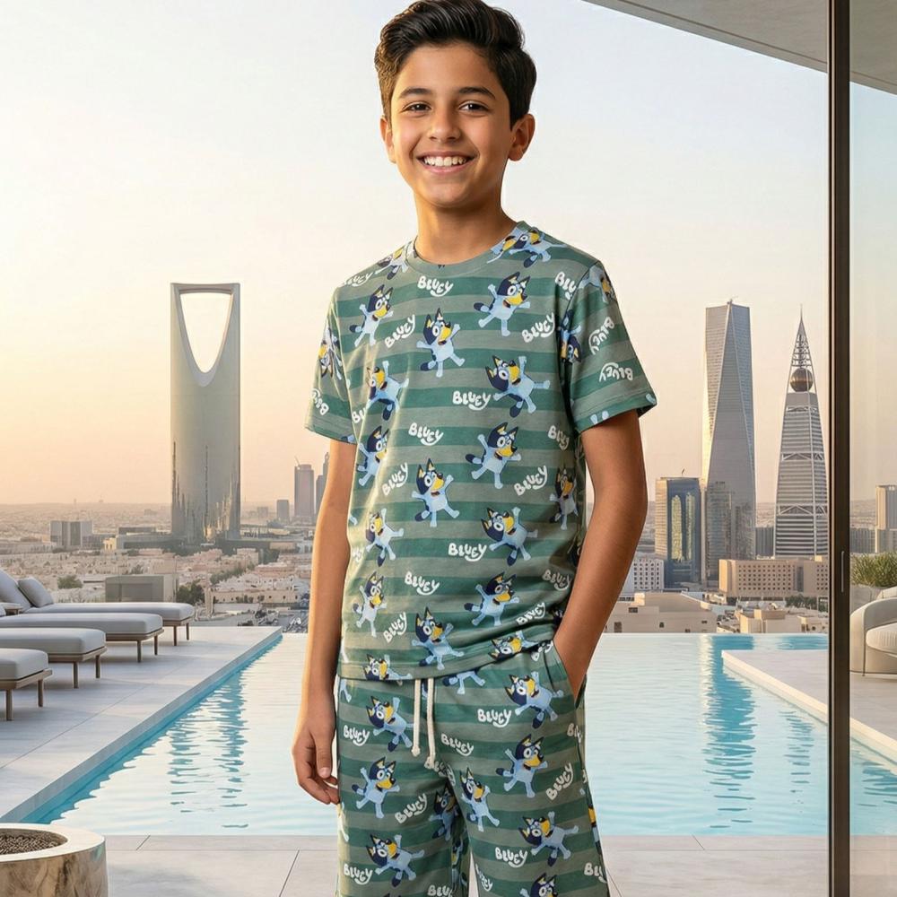 تألق بمظهر عصري ومريح مع هذا الطقم الصيفي الأنيق المصمم خصيصاً للأولاد الذين يبحثون عن التميز والحرية في الحركة.