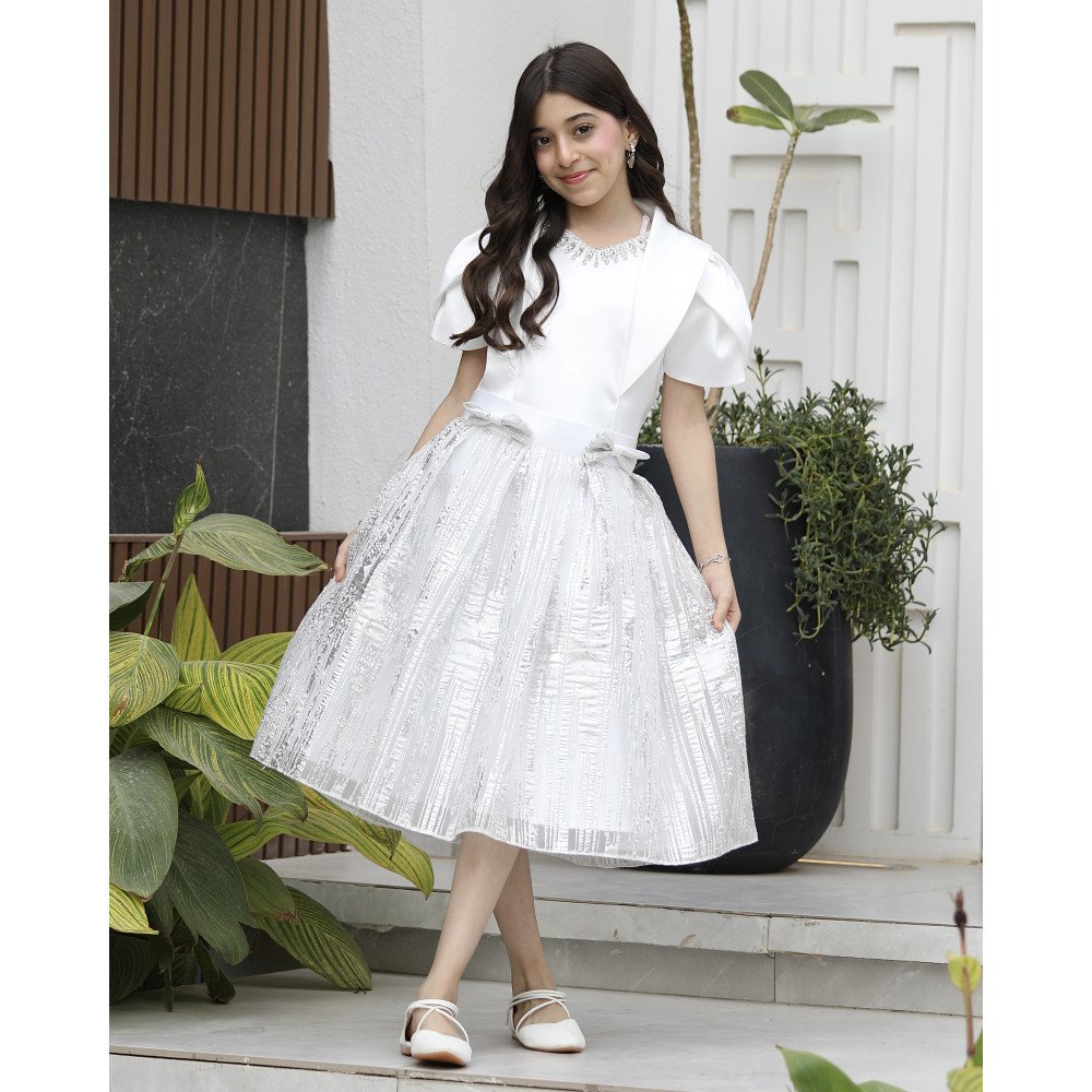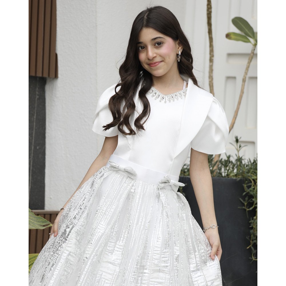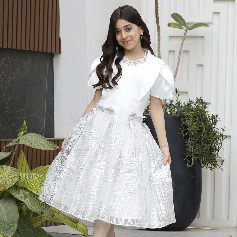 سحر الأضواء.. حين تعانق اللمعة الفاخرة ابتكار التصميمفي "توتي كيدز"، نصمم قطعاً لا تُنسى، وهذا الطقم هو تجسيد حي للفخامة العصرية التي تجعل من طفلتك "نجمة الحفل" الساطعة. نقدم لكِ الموديل M3793، تحفة فنية تتألف من قطعتين متناغمتين؛ تنورة (تيور) بلمعة ساحرة تبرق مع كل حركة، وبلوزة بيضاء ملكية تحمل تفاصيل هندسية تسبق أحدث صيحات الموضة. صُمم هذا الطقم ليمنح أميرتك الصغيرة حضوراً درامياً يفيض بالثقة والرقي، حيث يلتقي بريق القماش مع نعومة التفاصيل اليدوية. إنه ليس مجرد طقم ملابس، بل هو إعلان عن أناقة استثنائية تليق بأجمل لحظاتها. لماذا هذا الطقم هو خيارك الأكمل للمناسبات الكبرى؟لأنه يجمع بين الخامات الفاخرة وأدق التفاصيل الجمالية المبتكرة:تنورة "اللمعة" الساحرة: تتميز التنورة بقماش فاخر ذو بريق معدني راقٍ، يمنح طفلتك إشراقة فورية ويجعلها محط الأنظار في أي تجمع احتفالي.فيونكة "كتكوته" أنيقة: يزدان خصر التنورة بفيونكة رقيقة ومنسقة بإتقان، تضفي لمسة من البراءة والأنوثة وتحدد الخصر بأسلوب فني جذاب.بلوزة بتفاصيل أكمام جديدة: تأتي البلوزة بتصميم أكمام مبتكر (Structured Sleeves) يمنح الأكتاف حجماً ملكياً عصرياً، مما يضفي طابعاً من الفخامة والتميز.تفاصيل منسدلة على الصدر: تتميز البلوزة بقطعة قماشية انسيابية تنسدل بنعومة من الرقبة نحو الصدر، مما يعطي أبعاداً جمالية وحركة انسيابية تزيد من رقي التصميم.اكسسوار الرقبة المرصع: يزدان العنق بـ اكسسوار لامع فاخر مدمج بالتصميم، يضيء وجه أميرتك كعقد من الماس ويغنيكِ تماماً عن إضافة أي مجوهرات خارجية.مثالي للحفلات الكبرى: هذا الطقم هو الخيار الأول للأعياد، حفلات الزفاف، وجلسات التصوير التي تتطلب إطلالة ملكية عصرية.جودة تليق بلحظات لا تُنسى نحن نؤمن أن الجمال يكتمل بالجودة. هذا الطقم مصنوع بحرفية عالية جداً، مع بطانة داخلية ناعمة تضمن راحة طفلتك طوال وقت الاحتفال، وتقنيات خياطة متقنة تضمن بقاء اللمعة والاكسسوارات محافظة على رونقها الفاخر مهما تعددت مرات الارتداء.امنحيها إطلالة تشرق بـبريق اللمعة والابتكار! اجعلي من إطلالة أميرتك في مناسبتها القادمة ذكرى تتحدث عنها القلوب بقطعة تجمع بين الفن والترف.✨ اطلبيه الآن (موديل M3793) ودعي أميرتك الصغيرة تتألق بسحرٍ لا يقاوم! ✨ شاركينا إطلالتها الساحرة!يسعدنا دائماً رؤية أميراتكم يتألقن بتصاميمنا التي تعكس ذوقكم الرفيع. ندعوكِ لمشاركة صورها وتقييمك للمنتج، فرأيك هو مصدر إلهامنا الدائم لنقدم الأفضل.خدماتنا: نقدم لكِ تجربة تسوق ممتعة مع شحن سريع وموثوق لجميع المناطق، وسياسة استبدال واسترجاع مرنة لضمان رضاكِ الكامل.