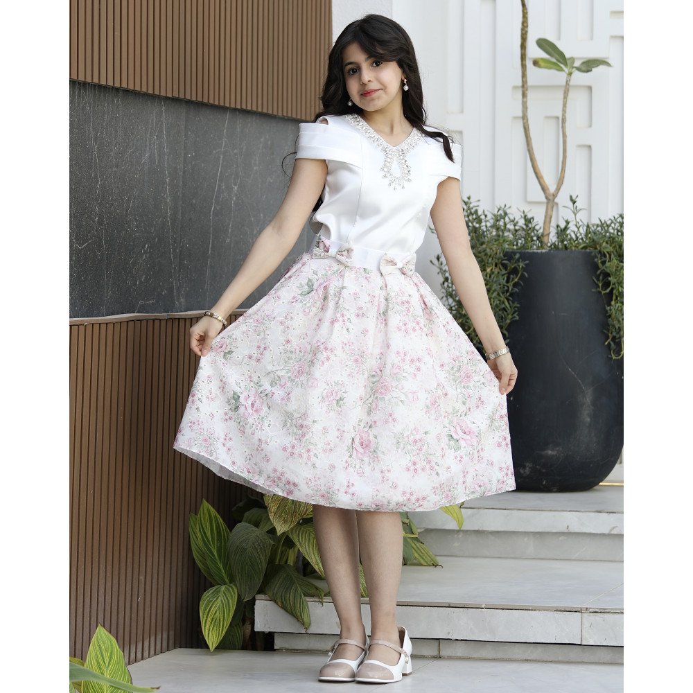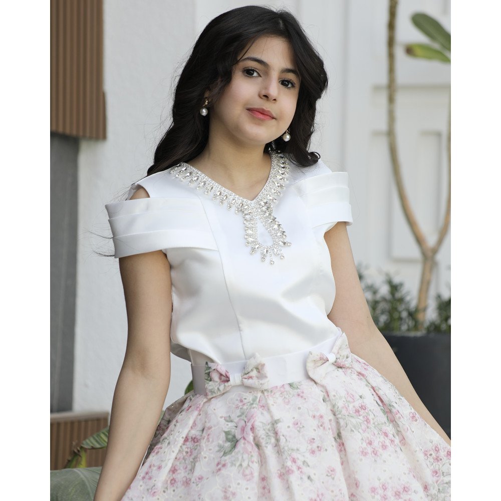سحر الطبيعة.. حين تعانق الزهور ابتكار التصميم العصريفي "توتي كيدز"، نصمم قطعاً تروي حكايات الجمال، وهذا الطقم هو سيمفونية من الألوان والقصات المبتكرة التي تجعل من طفلتك "نجمة الحفل" المتألقة. نقدم لكِ الموديل M3795، تحفة فنية تتألف من قطعتين منسجمتين؛ تنورة (تيور) تفيض بنقشات زهور "تفتح النفس" بألوان رقيقة، وبلوزة بيضاء ملكية تحمل تفاصيل هندسية تسبق أحدث صيحات الموضة العالمية. صُمم هذا الطقم ليمنح أميرتك الصغيرة حضوراً درامياً يفيض بالثقة والرقي، حيث يلتقي بريق القماش مع نقاء التفاصيل اليدوية. لماذا هذا الطقم هو خيارك الأكمل لمناسباتك القادمة؟لأنه يجمع بين عراقة النقشات وأحدث صيحات الـ "كوتور" في عالم أزياء الأطفال:تنورة الزهور المبهجة: تتميز التنورة بقماش فاخر منسوج بنقوش زهور غنية ونابضة بالحياة تضفي إشراقة فورية، مع قصة منفوشة تمنح طفلتك هيبة الأميرات.فيونكات "كتكوته" مزدوجة: يزدان خصر التنورة بـ فيونكتين ناعمتين ومنسقتين بإتقان، تضفيان لمسة من البراءة والأنوثة وتحددان الخصر بأسلوب فني جذاب.بلوزة بأكمام طبقات مبتكرة: تتميز البلوزة بتصميم أكمام "مفتوحة" (Drop-shoulder style) تنسدل بنعومة على الكتف، ومصممة بـ طبقات جديدة تمنح الأكتاف حجماً ملكياً عصرياً يواكب صيحات الموضة العالمية.اكسسوار الرقبة المنسدل: يزدان العنق بـ اكسسوار لامع فاخر مدمج بالتصميم، يلتف حول الرقبة وينسدل بنعومة نحو الصدر، مما يغنيكِ تماماً عن إضافة أي مجوهرات خارجية ويمنح وجه أميرتك بريقاً ملائكياً.مثالي للحفلات الكبرى: هذا الطقم هو الخيار الأول للأعياد، حفلات الزفاف، وجلسات التصوير التي تتطلب إطلالة ملكية عصرية متكاملة.جودة تليق بلحظات لا تُنسى نحن نؤمن أن الجمال يكتمل بالجودة العالية. هذا الطقم مصنوع بحرفية يدوية دقيقة، مع بطانة داخلية ناعمة تضمن راحة طفلتك طوال وقت الاحتفال، وتقنيات خياطة متقنة تضمن بقاء النقوش والاكسسوارات محافظة على رونقها الفاخر مهما تعددت مرات الارتداء.امنحيها إطلالة تشرق بـسحر الزهور والابتكار! اجعلي من إطلالة أميرتك في مناسبتها القادمة ذكرى تتحدث عنها القلوب بقطعة تجمع بين الفن والترف.✨ اطلبيه الآن (موديل M3795) ودعي أميرتك الصغيرة تتألق بسحرٍ لا يقاوم! ✨ شاركينا إطلالتها الساحرة!يسعدنا دائماً رؤية أميراتكم يتألقن بتصاميمنا التي تعكس ذوقكم الرفيع. ندعوكِ لمشاركة صورها وتقييمك للمنتج، فرأيك هو مصدر إلهامنا الدائم لنقدم الأفضل.خدماتنا: نقدم لكِ تجربة تسوق ممتعة مع شحن سريع وموثوق لجميع المناطق، وسياسة استبدال واسترجاع مرنة لضمان رضاكِ الكامل.