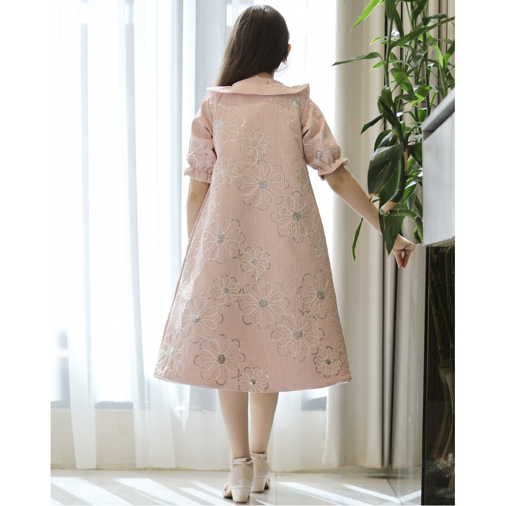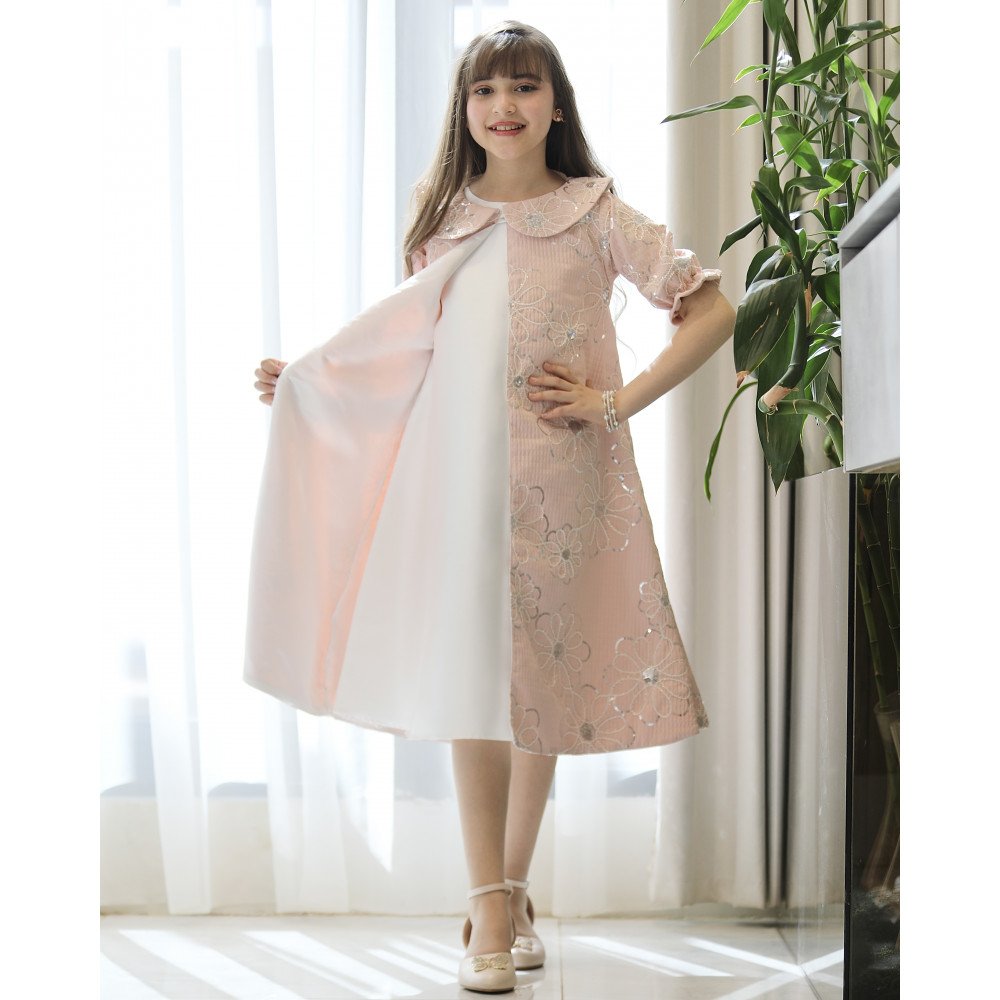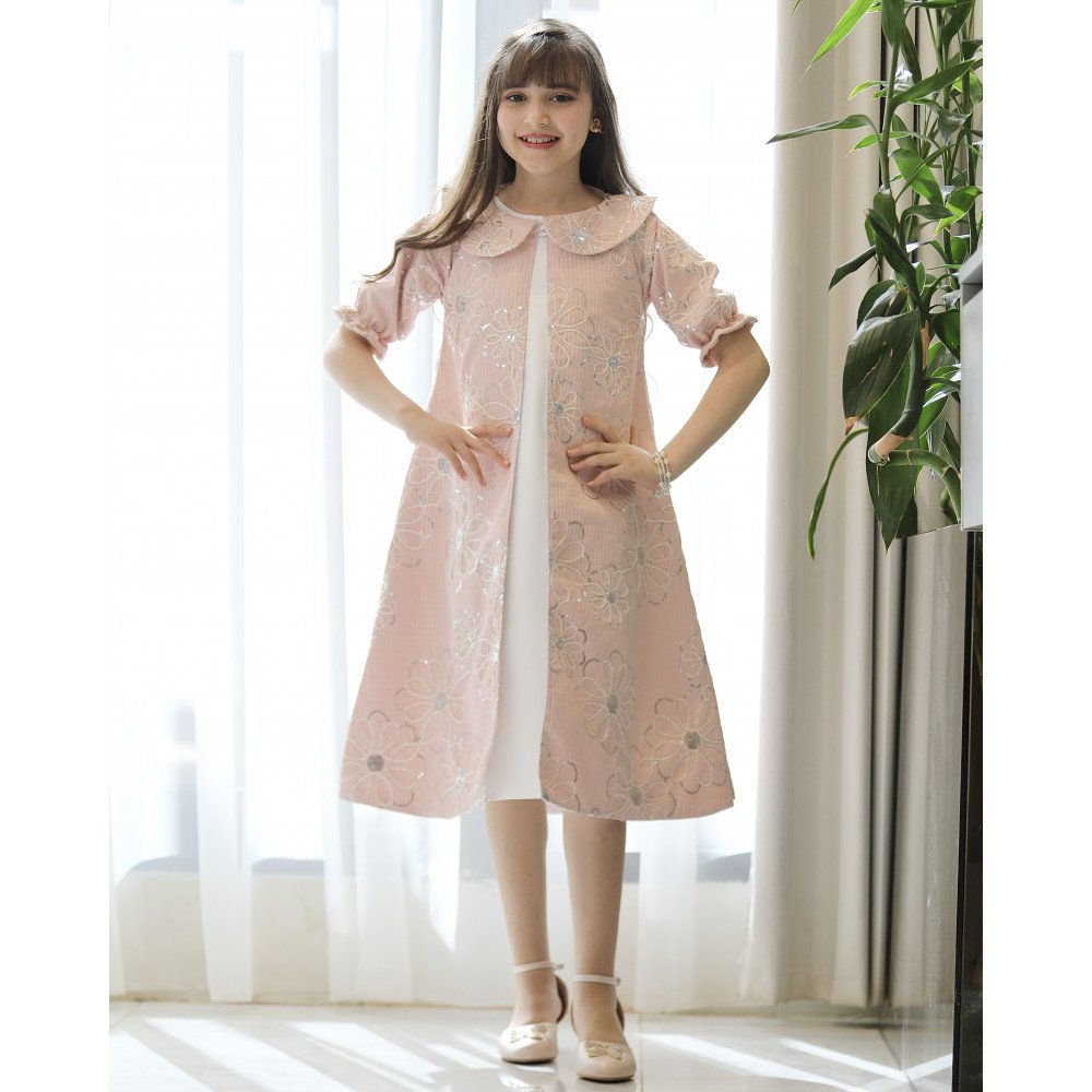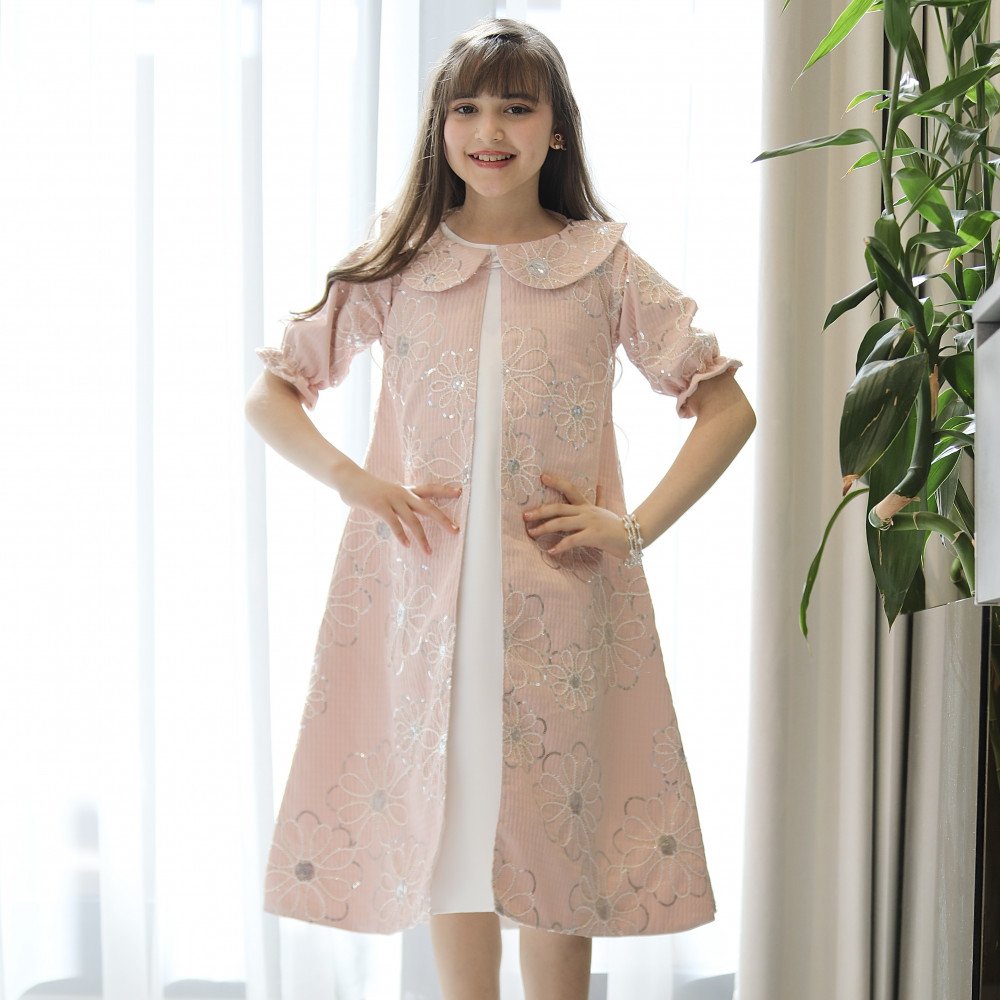 فخامة الحضور.. حين يلتقي رقي الروز ببريق التطريز الفضيفي عالم "توتي كيدز"، نعيد تعريف الأناقة الرسمية بلمسات تفيض بالرقة، وهذا الطقم هو الخيار الأمثل للأميرة التي تحب الحضور الملكي المرتب. نقدم لكِ الموديل 1195، قطعة فنية متكاملة تجمع بين نقاء الفستان الأبيض الداخلي وفخامة الجاكيت الوردي المشغول ببراعة. صُمم هذا الطقم ليمنح أميرتك إطلالة "كوتور" استثنائية، حيث تبرز الزهور الفضية المطرزة على كامل الجاكيت كعلامة على الذوق الرفيع والاهتمام بأدق التفاصيل الجمالية. إنه ليس مجرد طقم ملابس، بل هو إعلان عن حضور يجمع بين البراءة والترف. لماذا هذا الطقم هو خيارك الأكمل لمناسباتك القادمة؟لأنه يجمع بين التصميم المتكامل وجودة الخامات الاستثنائية:تصميم ملكي من قطعتين: يتكون الطقم من فستان أساسي أبيض ناعم يعلوه جاكيت (معطف متوسط الطول) وردي فاخر، مما يوفر إطلالة محتشمة ومرتبة جداً تعطي انطباعاً بالفخامة الفورية.جاكيت مطرز بزهور فضية: يتميز الجاكيت بقماش فاخر بنقشات زهور وأغصان فضية لامعة تنساب على كامل القطعة، مما يضفي عمقاً جمالياً وبريقاً هادئاً يخطف الأنظار تحت الأضواء.أكمام "زم" ملكية: تأتي أكمام الجاكيت بتصميم "باف" منفوخ ينتهي بكشكشة رقيقة (زم)، مما يضفي لمسة من الأنوثة والدلال على الإطلالة العامة.ياقة رسمية أنيقة: الجاكيت مصمم بياقة دائرية كلاسيكية "بيتر بان"، تمنح الطفلة طابعاً أرستقراطياً مناسباً للأعياد، حفلات التخرج، والزيارات الرسمية الراقية.قصة مريحة وعملية: يجمع الطقم بين الشكل الفخم والراحة التامة، مما يتيح لأميرتك الحركة واللعب بكل ثقة وأناقة طوال وقت الاحتفال.جودة تليق بلحظات لا تُنسى نحن في "توتي كيدز" نؤمن أن التميز يبدأ من جودة التنفيذ. هذا الطقم مصنوع بحرفية عالية جداً، من أقمشة باردة تسمح للبشرة بالتنفس، مع خياطة متقنة تضمن بقاء التطريز الفضي وتفاصيل الأكمام محافظة على شكلها الفخم ورونقها مهما تعددت مرات الارتداء.امنحيها إطلالة تشرق بـسحر الروز والبريق! اجعلي من إطلالة أميرتك في المناسبة القادمة ذكرى لا تُمحى بقطعة تجمع بين الفن والترف الرسمي.✨ اطلبيه الآن (موديل 1195) ودعي أميرتك الصغيرة تتألق بإشراقة لا تقاوم! ✨ شاركينا إطلالتها الساحرة!يسعدنا دائماً رؤية أميراتكم يتألقن بتصاميمنا التي تعكس ذوقكم الرفيع. ندعوكِ لمشاركة صورها وتقييمك للمنتج، فرأيك هو مصدر إلهامنا الدائم لنقدم الأفضل دائماً.خدماتنا: نقدم لكِ تجربة تسوق ممتعة مع شحن سريع وموثوق لجميع المناطق، وسياسة استبدال واسترجاع مرنة لضمان رضاكِ الكامل.