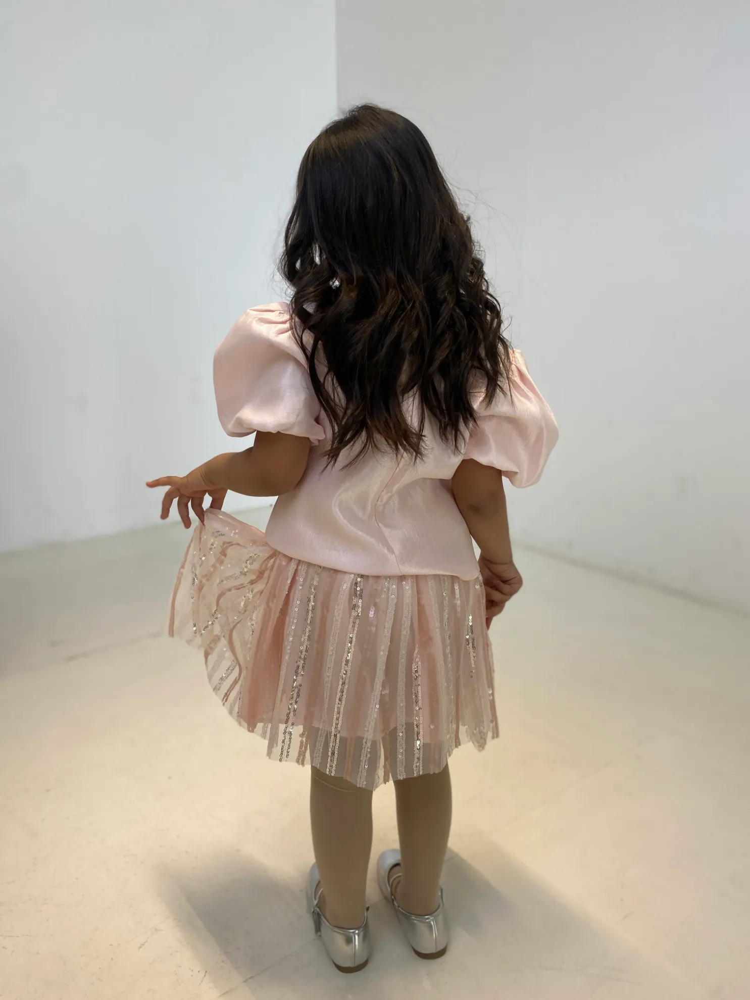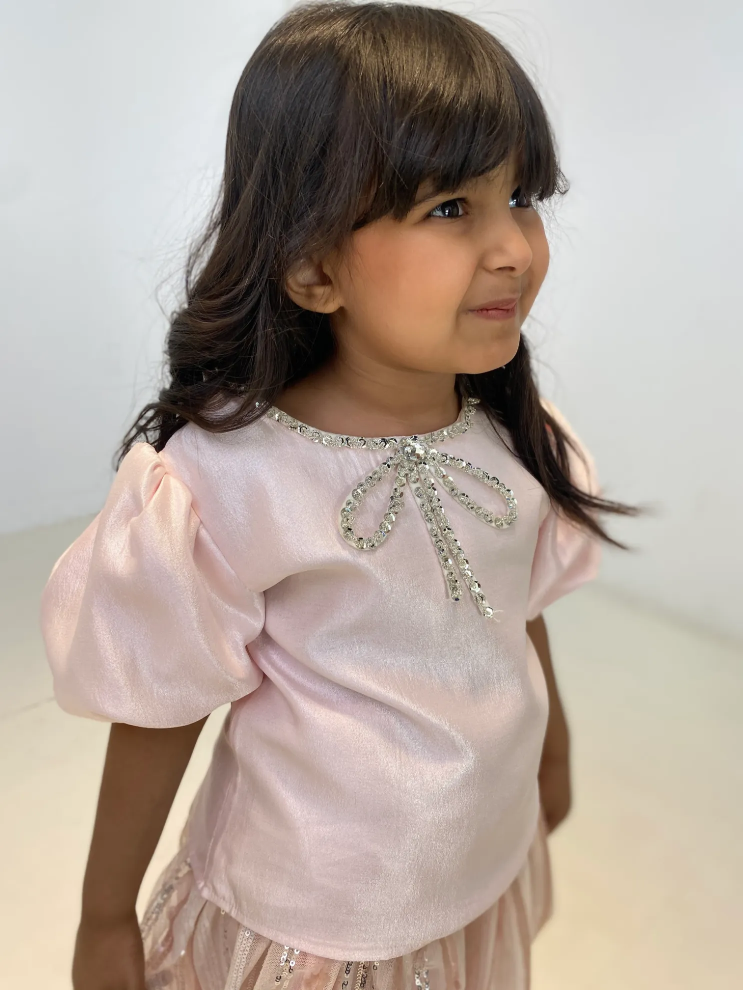 طقم تيور وبلوزة لؤلؤية وفينكة كرستال وتنوره دانتيل فرنسي