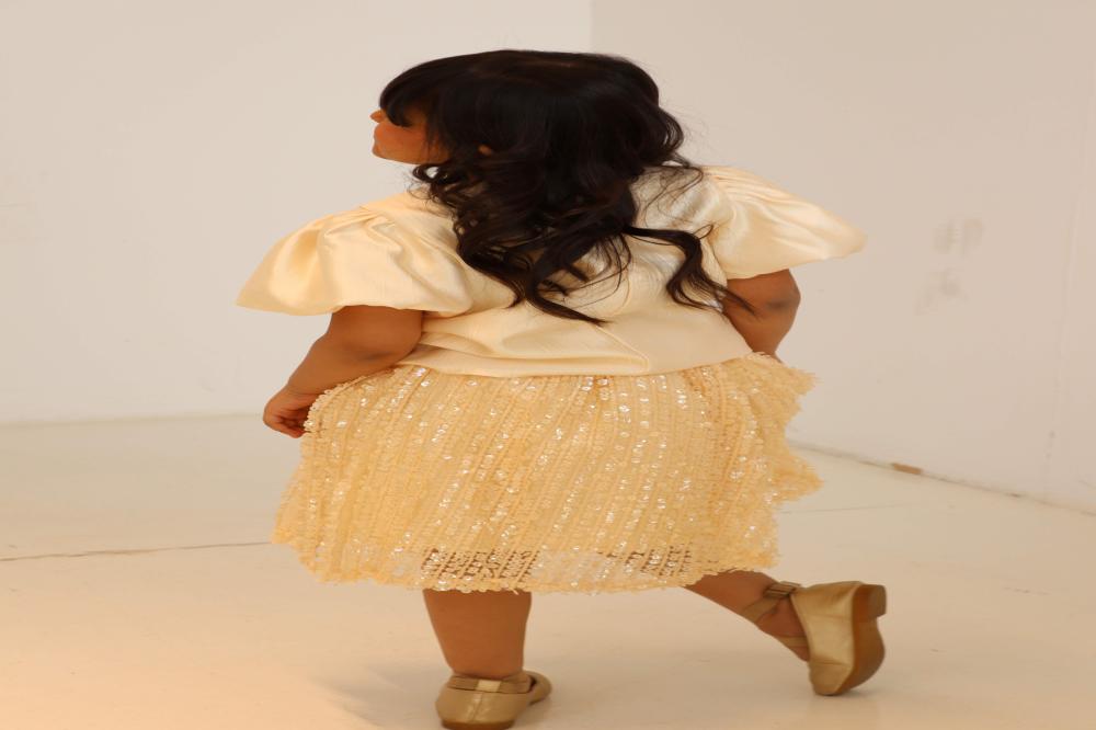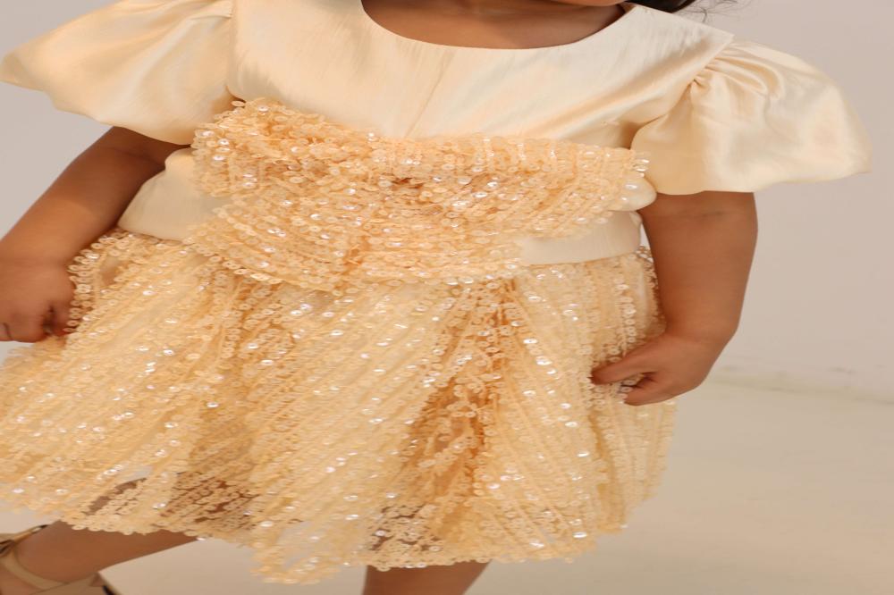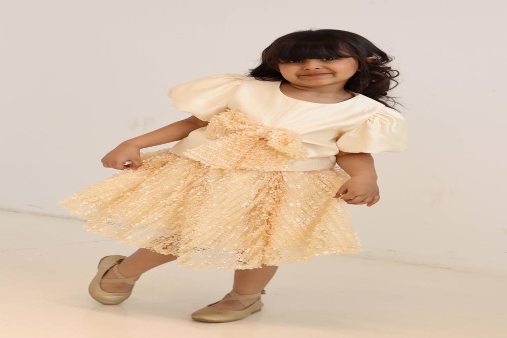 طقم تيور أصفر وبلوزة ترتر وفينكة ترتر وتنوره دانتيل