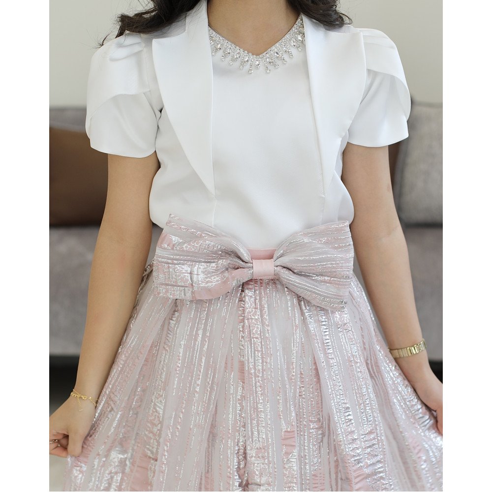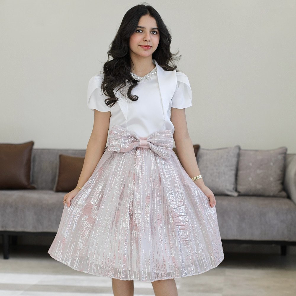 سحر الأضواء.. حين تعانق اللمعة الفاخرة ابتكار التصميمفي "توتي كيدز"، نصمم قطعاً لا تُنسى، وهذا الطقم هو تجسيد حي للفخامة العصرية التي تجعل من طفلتك "نجمة الحفل" الساطعة. نقدم لكِ الموديل M3793، تحفة فنية تتألف من قطعتين متناغمتين؛ تنورة (تيور) بلمعة ساحرة تبرق مع كل حركة، وبلوزة بيضاء ملكية تحمل تفاصيل هندسية تسبق أحدث صيحات الموضة. صُمم هذا الطقم ليمنح أميرتك الصغيرة حضوراً درامياً يفيض بالثقة والرقي، حيث يلتقي بريق القماش مع نعومة التفاصيل اليدوية. إنه ليس مجرد طقم ملابس، بل هو إعلان عن أناقة استثنائية تليق بأجمل لحظاتها. لماذا هذا الطقم هو خيارك الأكمل للمناسبات الكبرى؟لأنه يجمع بين الخامات الفاخرة وأدق التفاصيل الجمالية المبتكرة:تنورة "اللمعة" الساحرة: تتميز التنورة بقماش فاخر ذو بريق معدني راقٍ، يمنح طفلتك إشراقة فورية ويجعلها محط الأنظار في أي تجمع احتفالي.فيونكة "كتكوته" أنيقة: يزدان خصر التنورة بفيونكة كبيرة ومنسقة بإتقان، تضفي لمسة من البراءة والأنوثة وتحدد الخصر بأسلوب فني جذاب.بلوزة بتفاصيل أكمام جديدة: تأتي البلوزة بتصميم أكمام مبتكر (Structured Sleeves) يمنح الأكتاف حجماً ملكياً عصرياً، مما يضفي طابعاً من الفخامة والتميز.تفاصيل منسدلة على الصدر: تتميز البلوزة بقطعة قماشية انسيابية تنسدل بنعومة من الرقبة نحو الصدر، مما يعطي أبعاداً جمالية وحركة انسيابية تزيد من رقي التصميم.اكسسوار الرقبة المرصع: يزدان العنق بـ اكسسوار لامع فاخر مدمج بالتصميم، يضيء وجه أميرتك كعقد من الماس ويغنيكِ تماماً عن إضافة أي مجوهرات خارجية.مثالي للحفلات الكبرى: هذا الطقم هو الخيار الأول للأعياد، حفلات الزفاف، وجلسات التصوير التي تتطلب إطلالة ملكية عصرية.جودة تليق بلحظات لا تُنسى نحن نؤمن أن الجمال يكتمل بالجودة. هذا الطقم مصنوع بحرفية عالية جداً، مع بطانة داخلية ناعمة تضمن راحة طفلتك طوال وقت الاحتفال، وتقنيات خياطة متقنة تضمن بقاء اللمعة والاكسسوارات محافظة على رونقها الفاخر مهما تعددت مرات الارتداء.امنحيها إطلالة تشرق بـبريق اللمعة والابتكار! اجعلي من إطلالة أميرتك في مناسبتها القادمة ذكرى تتحدث عنها القلوب بقطعة تجمع بين الفن والترف.✨ اطلبيه الآن (موديل M3793) ودعي أميرتك الصغيرة تتألق بسحرٍ لا يقاوم! ✨ شاركينا إطلالتها الساحرة!يسعدنا دائماً رؤية أميراتكم يتألقن بتصاميمنا التي تعكس ذوقكم الرفيع. ندعوكِ لمشاركة صورها وتقييمك للمنتج، فرأيك هو مصدر إلهامنا الدائم لنقدم الأفضل.خدماتنا: نقدم لكِ تجربة تسوق ممتعة مع شحن سريع وموثوق لجميع المناطق، وسياسة استبدال واسترجاع مرنة لضمان رضاكِ الكامل.