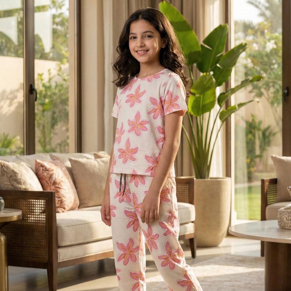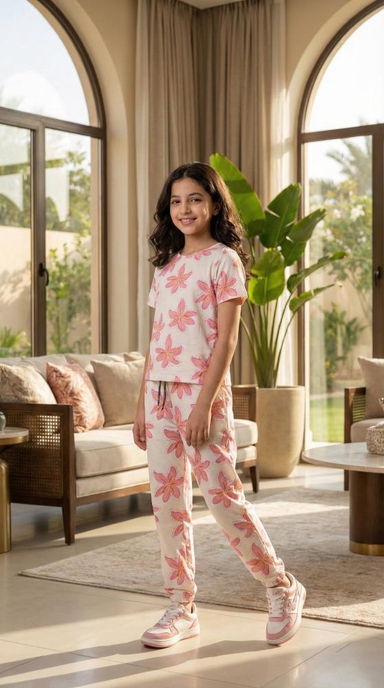 استقبلي أوقات الاسترخاء واللعب بأناقة لا مثيل لها مع طقم البيجامة المريح هذا. مصمم خصيصاً للفتيات اللواتي يعشقن التميز والراحة في آن واحد.