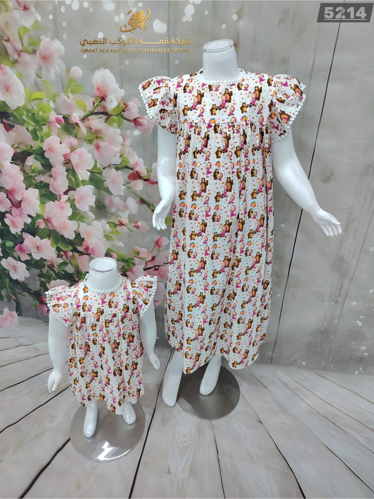 فستان بناتي ناعم بطبعات زهور وشخصيات لطيفة، خامة مريحة وقَصّة واسعة تمنح طفلتك إطلالة مرحة ومناسبة لكل طلعة.