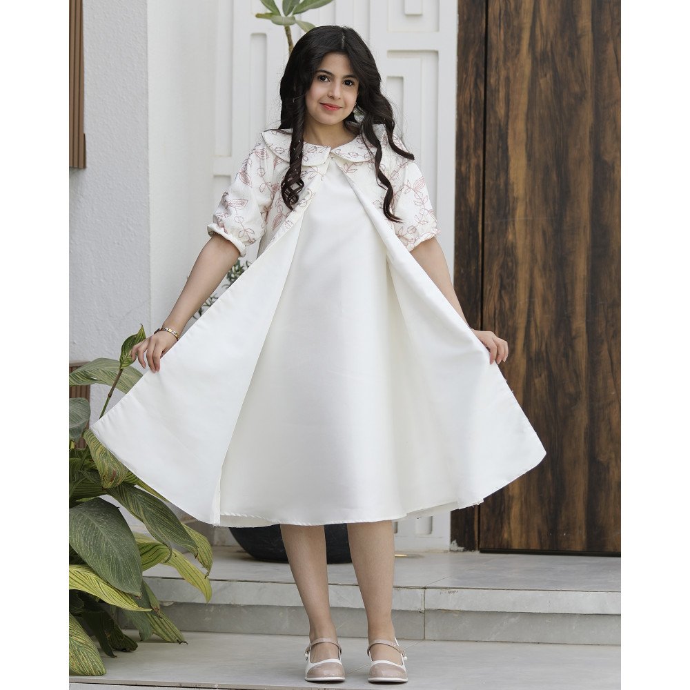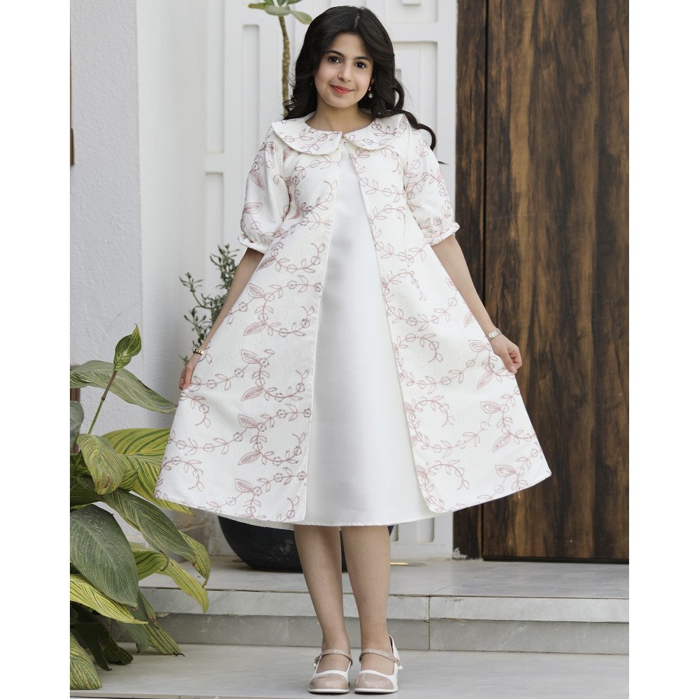 الأناقة الشفافة.. حين تعانق الفخامة رقة التفاصيلفي عالم الجمال، التفاصيل هي التي تصنع الفرق، وهذا الفستان هو تجسيد حي للرقي المتقن. نقدم لكِ الموديل 1142، قطعة فنية تجمع بين فخامة القماش المطرز وسحر الأكمام الشفافة التي تنسدل كنسيم الربيع. صُمم هذا الفستان ليمنح أميرتك الصغيرة حضوراً يفيض بالثقة والأنوثة، حيث تلتقي الياقة البيضاء الصافية مع تفاصيل التطريز الغنية لتخلق تناغماً بصرياً يخطف الأنظار. إنه ليس مجرد فستان، بل هو قطعة من الذوق الرفيع مصممة لتجعل من طفلتك نجمة متألقة في كل مناسبة. لماذا هذا الفستان هو الخيار الأكثر تميزاً لأميرتك؟لأنه يجمع بين التصميم الفني المبتكر وأدق التفاصيل الجمالية:نسيج مطرز فاخر: يتميز الفستان بقماش مشغول بتطريزات دقيقة وغنية، تمنح القطعة عمقاً جمالياً وفخامة تليق بأرقى المناسبات.ياقة بيضاء "دلعة" ملكية: تأتي الرقبة بتصميم "دلعة" بيضاء نقية، تضفي إشراقة فورية على الوجه وتحدد معالم التصميم بلمسة كلاسيكية راقية.أكمام شفافة ساحرة: الأكمام مصممة من قماش شفاف ناعم وخفيف، يمنح الفستان لمسة من الشاعرية والنعومة، مما يجعله قطعة فريدة تبرز رقة أميرتك.قصة انسيابية مريحة: يجمع التصميم بين المظهر الفخم والراحة المطلقة، مما يتيح للطفلة الحركة واللعب بكل خفة مع الحفاظ على مظهرها المرتب والأنيق.مثالي للمناسبات الراقية: سواء كان الاحتفال بعيد، أو حفل زفاف، أو مناسبة عائلية خاصة، فإن هذا الفستان يضمن بقاء طفلتك في قمة أناقتها.جودة تليق بلحظات لا تُنسى نحن في "توتي كيدز" ندرك أن التميز يبدأ من جودة التنفيذ. هذا الفستان مصنوع بحرفية عالية من أقمشة مختارة بعناية لتكون ناعمة على البشرة، مع خياطة متقنة تضمن بقاء التطريز والأكمام الشفافة محافظة على رونقها الفاخر مهما تعددت مرات الارتداء. امنحيها إطلالة تشرق بـسحر التطريز والبريق!اجعلي من مناسبة أميرتك القادمة ذكرى لا تُمحى بقطعة تجمع بين الفن والترف.✨ اطلبيه الآن (موديل 1142) ودعي أميرتك الصغيرة تشرق بجمالٍ لا يقاوم! ✨ شاركينا إطلالتها الساحرة!يسعدنا دائماً رؤية أميراتكم يتألقن بتصاميمنا التي تعكس ذوقكم الرفيع. ندعوكِ لمشاركة صورها وتقييمك للمنتج، فرأيك هو مصدر إلهامنا الدائم لنقدم الأفضل.خدماتنا: نقدم لكِ تجربة تسوق ممتعة مع شحن سريع وموثوق، وسياسة استبدال واسترجاع مرنة لضمان رضاكِ الكامل.