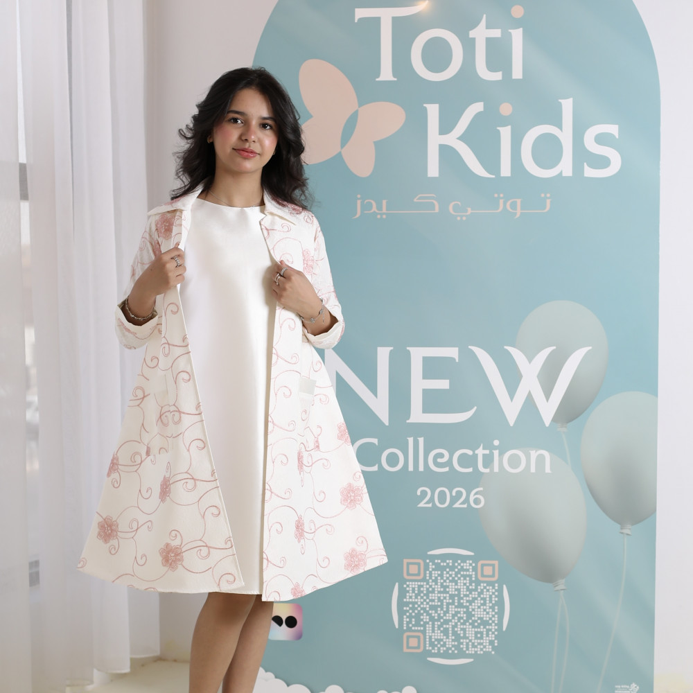الأناقة المتكاملة.. إطلالة تجمع النقاء وفخامة التفاصيلهناك إطلالات مصممة لتكون متكاملة، وهذا الطقم هو عنوان لهذه الفخامة. نقدم لكِ تحفة فنية تجمع بين النقاء المطلق للفستان الأبيض كقطعة أساسية، والرقي الفاخر للجاكيت المورد الذي يزينه. صُمم هذا الطقم ليمنح أميرتك إطلالة ملكية ومحتشمة في آن واحد، إطلالة تترك أثراً من الذوق الرفيع في كل مناسبة. إنه ليس مجرد فستان، بل هو طقم متكامل يعكس أناقة استثنائية. لماذا هذا الطقم هو خيارك الأرقى؟لأنه يجمع بين قطعتين فاخرتين في إطلالة واحدة متناغمة:تصميم متكامل من قطعتين: يتكون الطقم من فستان داخلي أنيق من الساتان الأبيض النقي (بلا أكمام)، مع جاكيت (معطف) خارجي فاخر يطابقه في الطول والقصة.جاكيت جاكار مورد: يتميز الجاكيت بقماش فاخر (جاكار أو بروكار) منسوج بنقوش أغصان وزهور باللون الوردي الناعم، مما يضفي لمسة من الفخامة والرقي.إطلالة متعددة الأوجه: يمكن ارتداء الفستان الأبيض بمفرده لإطلالة ناعمة، أو مع الجاكيت لإضافة طبقة من الأناقة الرسمية والفخامة، مما يجعله مثاليًا لطقس المناسبات المتغير.قماش ساتان راقٍ: صُنع الفستان الداخلي من قماش الساتان المتماسك (ميكادو)، الذي يمنح التنورة قصة منفوشة وثابتة، مع لمعان راقٍ.مثالي للمناسبات الكبرى: هذا الطقم البناتي الفاخر هو الخيار الأمثل للأعياد، وحفلات الزفاف، والمناسبات التي تتطلب إطلالة متكاملة وراقية. جودة تليق بإطلالة لا تُنسىعند البحث عن ملابس بنات للمناسبات، فإن هذا الطقم يقدم جودة لا تضاهى. مصنوع بحرفية عالية وخياطة متقنة ليدوم طويلاً ويبقى ذكرى لأجمل اللحظات. ✨ اطلبيه الآن لتتألق بإطلالة راقية تخطف الأنظار! ✨