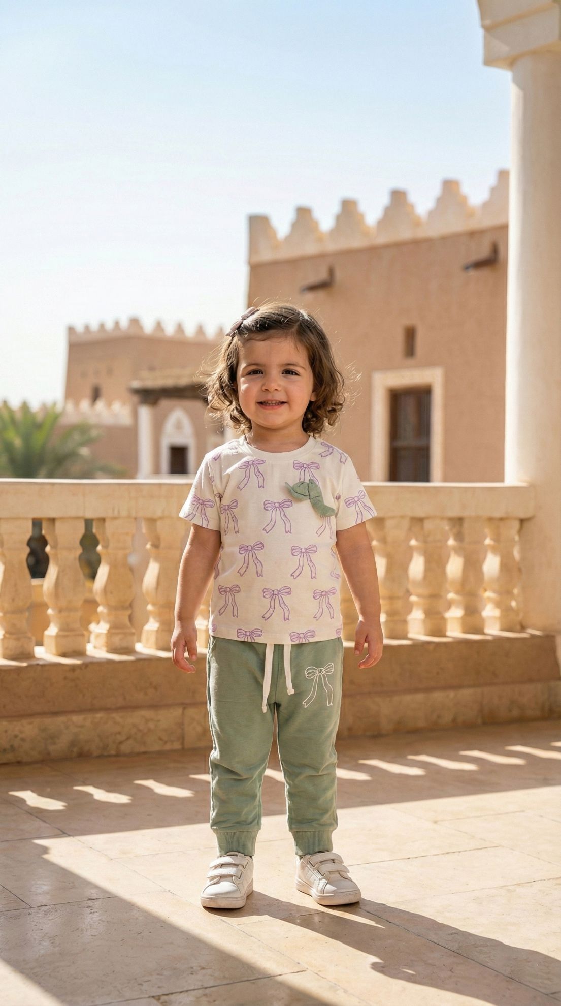 وصف المنتج: امنحي أميرتك الصغيرة راحة لا مثيل لها مع طقم "فيونكة الأحلام". صُمم هذا الطقم ليجمع بين الأناقة المنزلية والنعومة الفائقة، مما يجعله الخيار المثالي لوقت النوم أو اللعب الهادئ داخل البيت. التصميم: يتميز بنقوش الفيونكات الوردية الرقيقة التي تغطي الطقم بالكامل على خلفية بلون "المينت" (الأخضر الباستيل) المنعش، ليمنح طفلتك مظهراً حيوياً ولطيفاً. الخامة: مصنوع من قطن طبيعي عالي الجودة، ناعم على بشرة الأطفال الحساسة ويسمح بمرور الهواء لضمان راحة تامة طوال اليوم. القطع: يتكون من تيشيرت بأكمام قصيرة وبنطلون مريح بخصر مطاطي مرن يسهل الحركة. المناسبة: مثالي للاستخدام اليومي، ويعد هدية رائعة بفضل ألوانه المتناسقة وتصميمه العصري.