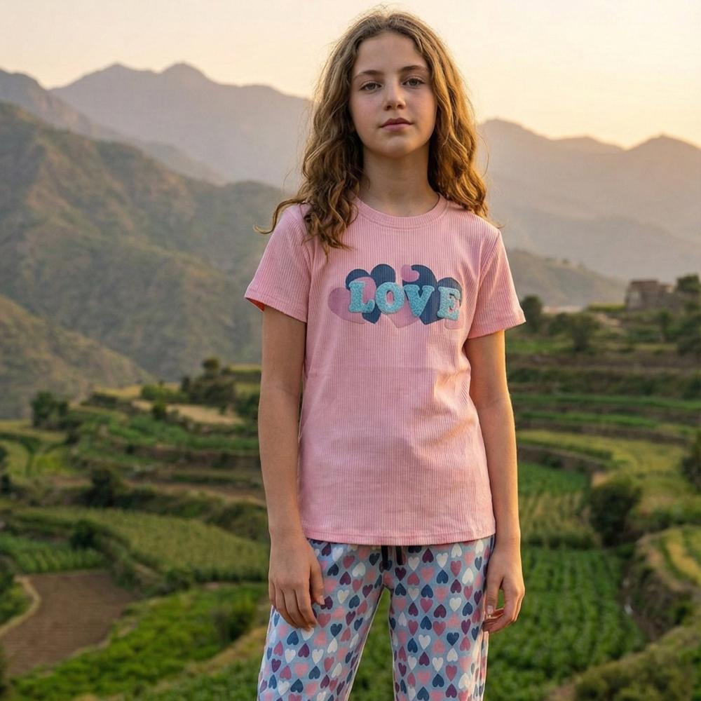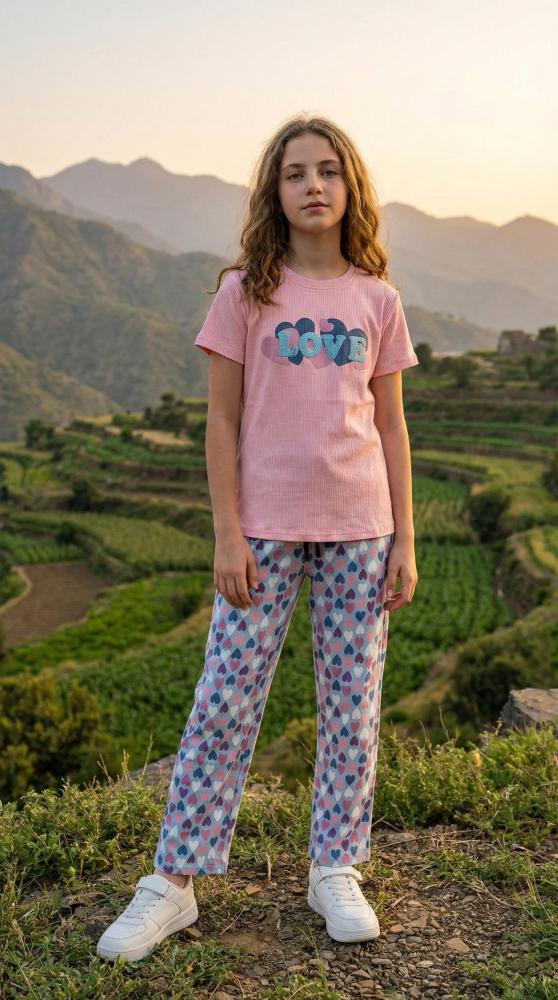 استقبلي أوقات الاسترخاء واللعب بأناقة لا مثيل لها مع طقم البيجامة المريح هذا. مصمم خصيصاً للفتيات اللواتي يعشقن التميز والراحة في آن واحد.