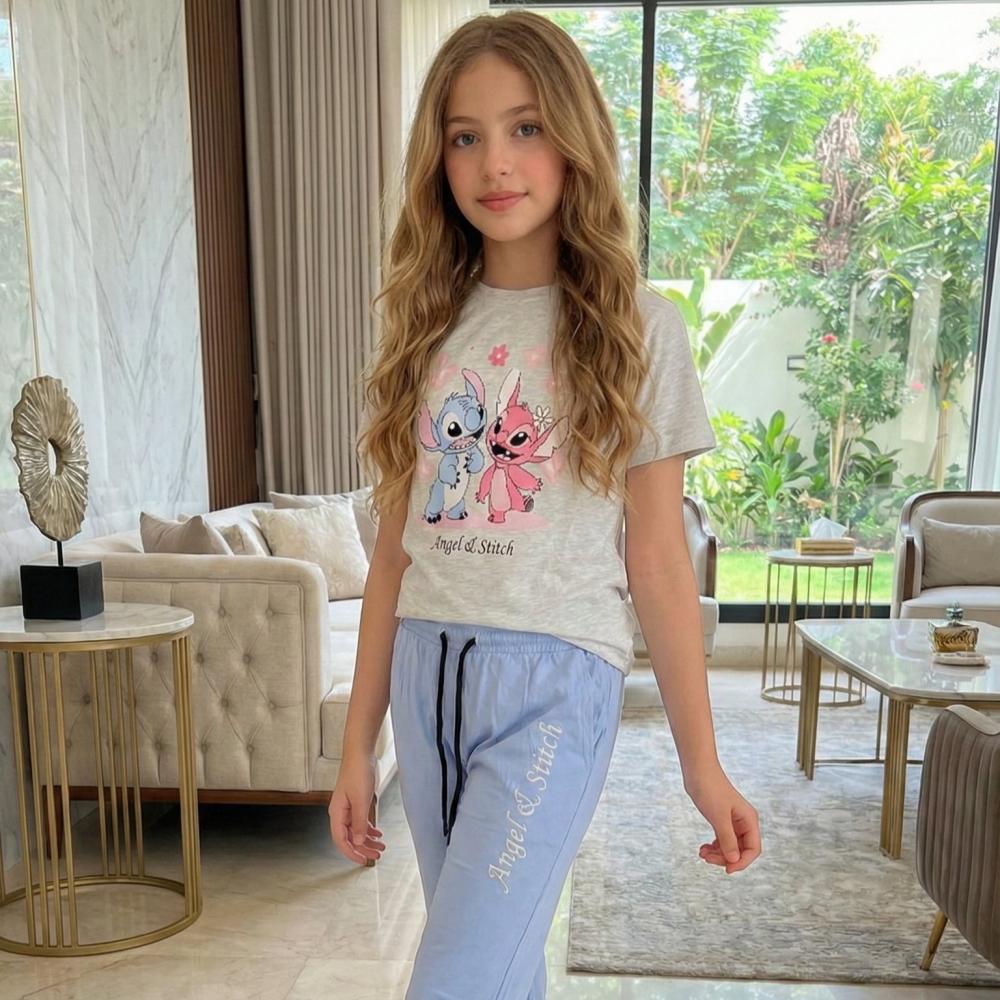 استقبلي أوقات الاسترخاء واللعب بأناقة لا مثيل لها مع طقم البيجامة المريح هذا. مصمم خصيصاً للفتيات اللواتي يعشقن التميز والراحة في آن واحد.