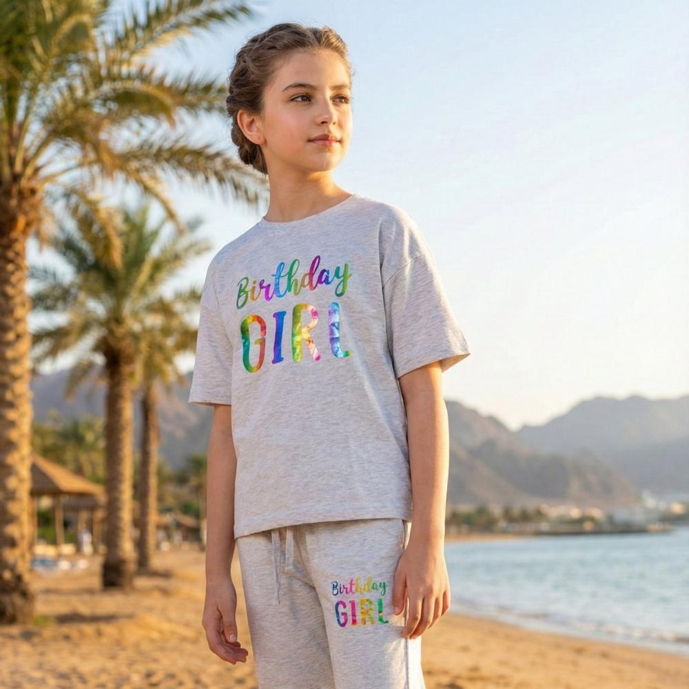 استقبلي أوقات الاسترخاء واللعب بأناقة لا مثيل لها مع طقم البيجامة المريح هذا. مصمم خصيصاً للفتيات اللواتي يعشقن التميز والراحة في آن واحد.