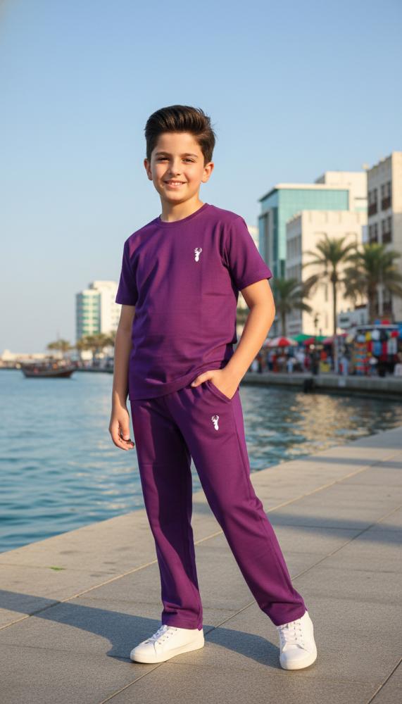 • التصميم: تصميم بسيط وخالٍ من النقوش المعقدة، يعتمد على اللون الوردي المشمشي كقاعدة. البلوزة سادة بخطوط تصميم نظيفة. البنطلون بقصة Jogger عصرية ومريحة بأطراف مطاطية.