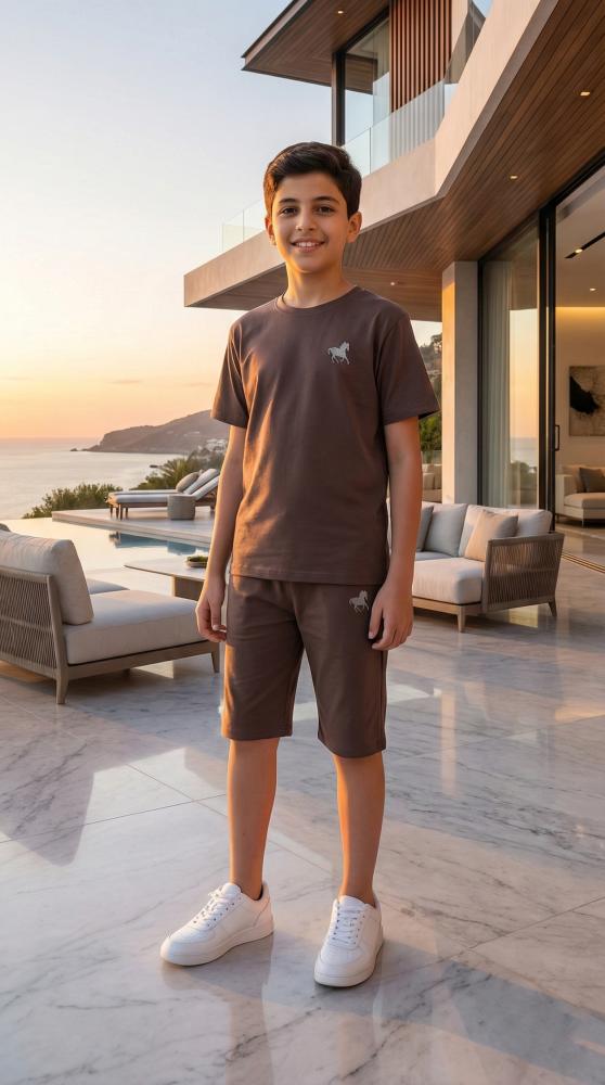 نقدم لكم هذا الطقم الصيفي المكون من قطعتين، والمصمم خصيصاً ليجمع بين المظهر العصري والعملية في آن واحد. بفضل لونه البني التشوكليت الدافئ، يمنح هذا الطقم طفلك إطلالة هادئة ومميزة تناسب النزهات العائلية أو أوقات الاسترخاء.