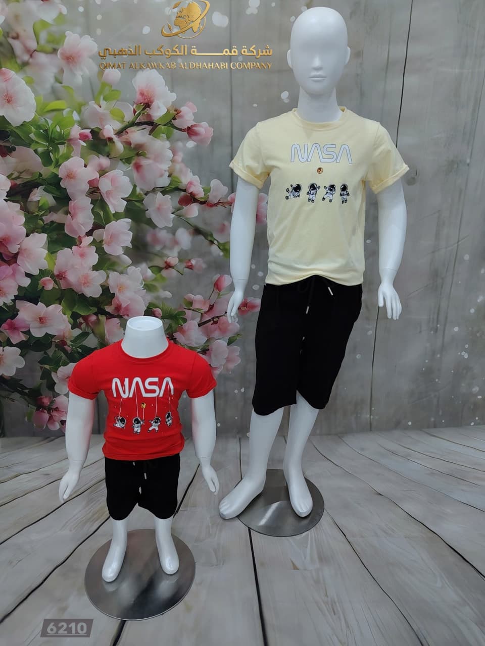 طقم أولادي مكوّن من تيشيرت بطباعة NASA ورواد الفضاء، مع شورت أسود عملي. تصميم مريح وخفيف يمنح إطلالة شبابية ممتعة لعشّاق الفضاء والمغامرات.