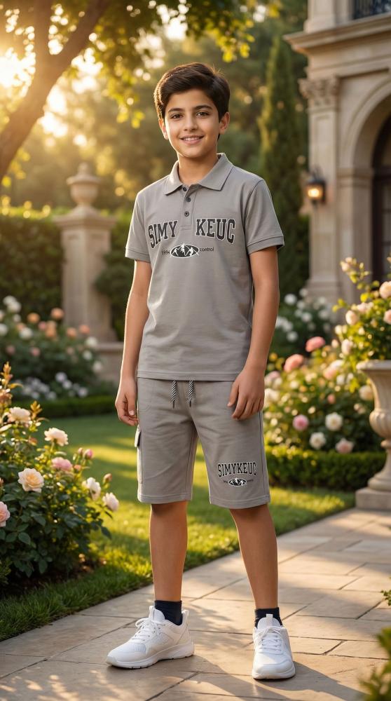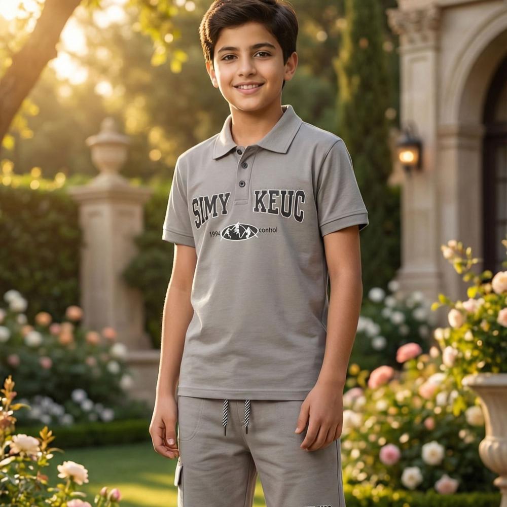تألق بمظهر عصري ومريح مع هذا الطقم الصيفي الأنيق المصمم خصيصاً للأولاد الذين يبحثون عن التميز والحرية في الحركة.