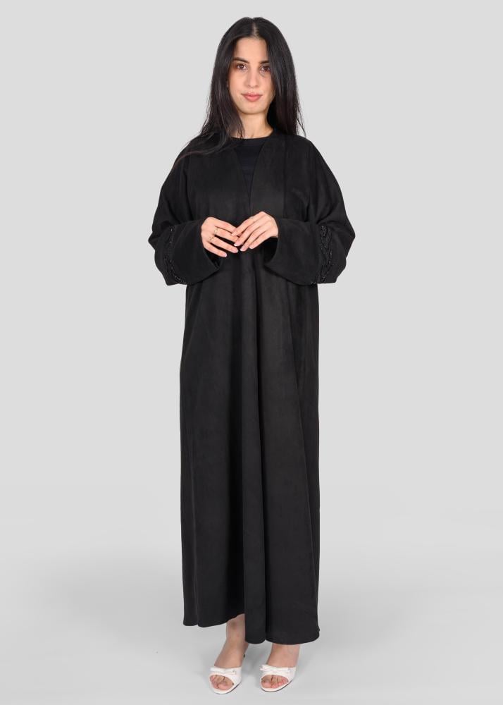 عباية شامواه مفتوحة بتصميم يجمع بين الفخامة والبساطة العملية، مصنوعة من قماش شامواه ناعم يمنح ملمسًا راقيًا وثباتًا جيدًا يناسب الأجواء الباردة. تأتي العباية بتطريز متقن على الأكمام يمنح لمسة فاخرة بدون مبالغة، مع قصة مستقيمة مفتوحة من الأمام توفر سهولة في الحركة وتنسيقًا مرنًا مع القطع الداخلية. الأكمام بتصميم طويل ومطرز بدقة، ما يمنح توازناً بين الأناقة والعملية، بينما يمنح قماش الشامواه انسيابية هادئة ومظهرًا مرتبًا يحافظ على ثبات اللون والملمس. العباية مناسبة للاستخدام في المناسبات المسائية، الزيارات، والمناسبات الشتوية الخفيفة.