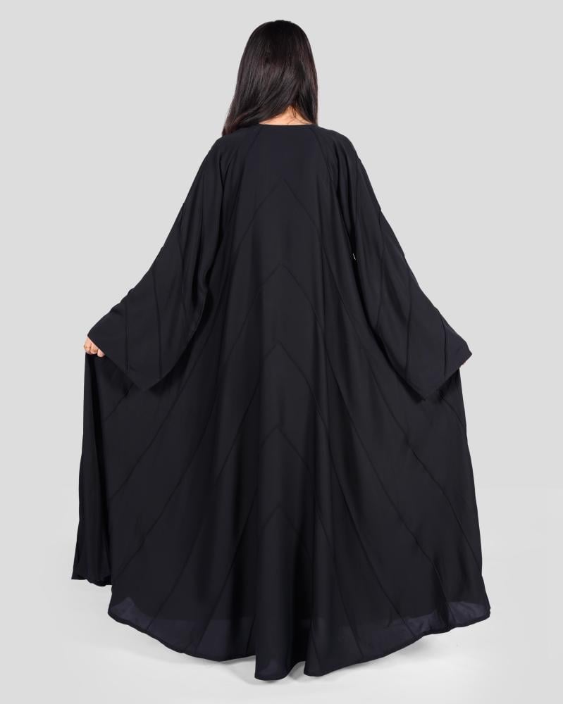 تصميم مفتوح بالكامل قصة كلوش واسعة من الأسفل خياطات طولية على الجهتين ياقة دائرية بسيطة خامة خفيفة وناعمة مناسبة للعمل والمناسبات