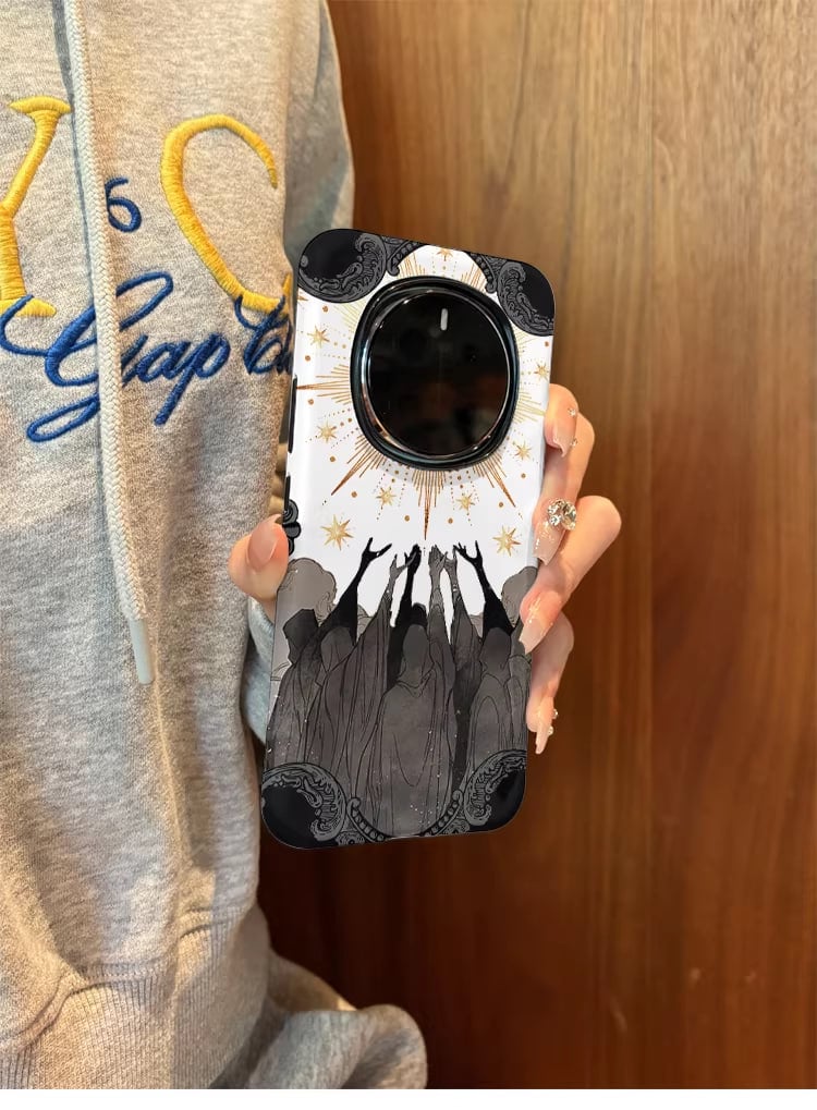 غطاء "الامل و النور" – لهاتف Honor Magic 8 Proاستثنائي.. تماماً كحاملة.ارتقِ بمظهر هاتفك مع هذا الغطاء الفني الذي يمزج بين التصميم الكلاسيكي والروحانية العصرية. صُمم هذا الغطاء خصيصاً ليبرز وحدة الكاميرا الدائرية المميزة في هاتف هونر ماجيك، ليحولها إلى قطعة فنية متكاملة.لماذا تختار هذا الغطاء؟تصميم فني فريد: يتميز برسمة يدوية دقيقة تجسد أيادٍ مرفوعة نحو "شمس ذهبية" محاطة بالنجوم، مما يعطي شعوراً بالأمل والفخامة في آن واحد.تناغم مثالي مع الكاميرا: الفتحة العلوية مصممة بدقة متناهية لتناسب إطار الكاميرا العملاق في Honor Magic 6 Pro، مع حواف بارزة قليلاً لحماية العدسات من الخدوش.جودة طباعة فائقة: نستخدم تقنيات طباعة حرارية متطورة تضمن عدم بهتان الألوان أو تقشر التصميم مع الاستخدام اليومي المكثف.حماية دون وزن إضافي: الغطاء مصنوع من مواد عالية المقاومة للصدمات (Plastic and silicone ) مع ملمس ناعم يوفر قبضة محكمة ويمنع الانزلاق،خلفية بيضاء نقية: تبرز التفاصيل الذهبية والسوداء، مما يجعل هاتفك قطعة لافتة للأنظار في أي مكان.المواصفات التقنية:التوافق: Honor Magic 8 Pro.المادة: بلاستيك مقوى مقاوم للبصمات والخدوش.الوزن: خفيف جداً (Ultra-lightweight).الوصول: فتحات دقيقة لجميع الأزرار ومنفذ الشحن ومخارج الصوت."هذا ليس مجرد غطاء حماية، إنه تعبير عن ذوقك الرفيع وشغفك بالفن."