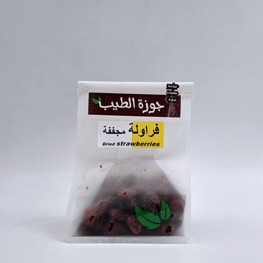 الفراولة المجففة الفراولة المجففة هي وجبة خفيفة لذيذة ومغذية تُقدم الفراولة المجففة العديد من الفوائد الصحية، بما في ذلك: غنية بالألياف: تُساعد الألياف على تحسين الهضم وتعزيز الشعور بالشبع وخفض مستويات الكوليسترول. مصدر غني بفيتامين ج: يُعزز فيتامين ج صحة الجهاز المناعي ويُحارب الجذور الحرة ويُحافظ على صحة البشرة. مصدر غني بالبوتاسيوم: يُساعد البوتاسيوم على تنظيم ضغط الدم وتحسين صحة القلب. مصدر غني بمضادات الأكسدة: تُحارب مضادات الأكسدة الجذور الحرة وتقلل من خطر الإصابة بالأمراض المزمنة. استخدامات الفراولة المجففة: كوجبة خفيفة صحية: تُعد الفراولة المجففة وجبة خفيفة مثالية لسد الجوع بين الوجبات. إضافتها إلى الحبوب والشوفان والزبادي: تُضفي الفراولة المجففة نكهة حلوة ومغذية على الحبوب والشوفان والزبادي. استخدامها في تحضير المخبوزات والحلويات والكعكات: تُضفي الفراولة المجففة نكهة مميزة وملمسًا رائعًا على المخبوزات والحلويات والكعكات. تزيين السلطات والأطباق الرئيسية: تُضفي الفراولة المجففة لمسة جمالية ولذيذة على السلطات والأطباق الرئيسية. كيفية تخزين الفراولة المجففة: يُحفظ في وعاء محكم الإغلاق في مكان بارد وجاف: يُمكن حفظه في الثلاجة لمدة تصل إلى عام واحد:
