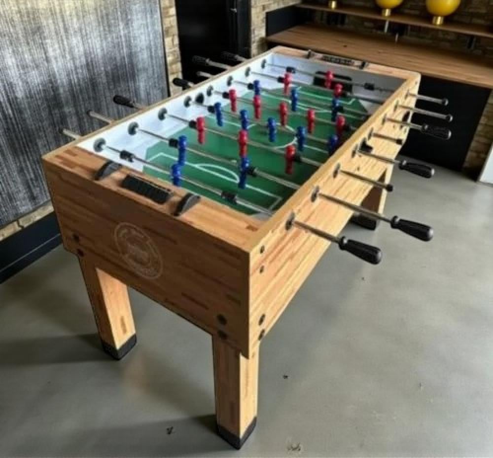 استمتع بلعب كرة القدم مع طاولة فرفيرة خشبية! زوايا مرتفعة للحفاظ على الكرة في اللعب طوال الوقت بمقابض مضادة للانزلاق، وأقدام قابلة للتعديل. احصل على تجربة لا تُنسى مع طاولتنا الكريمة.