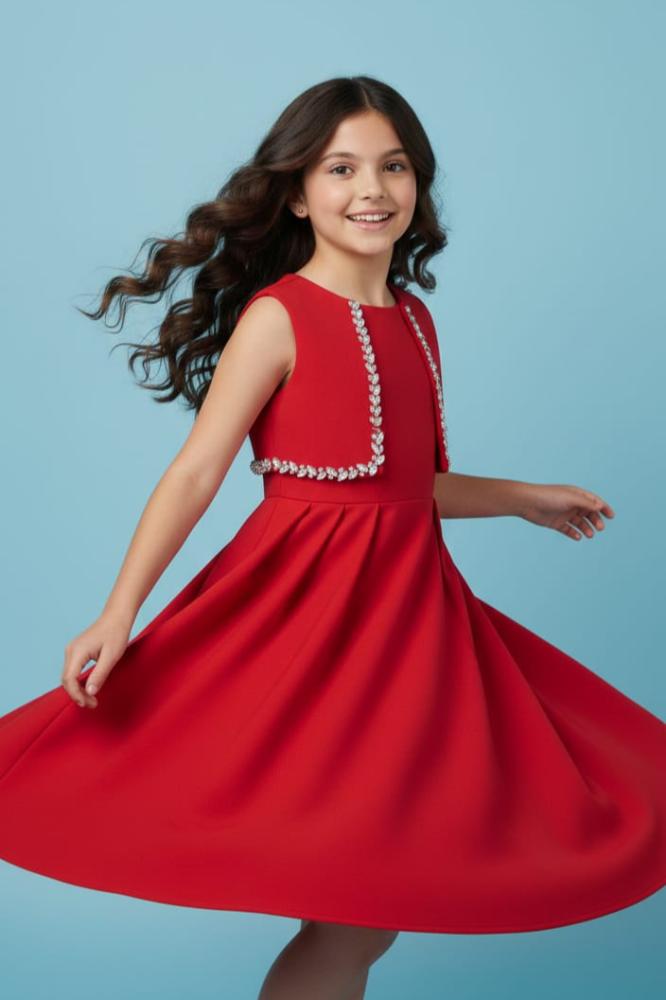 فستان أحمر بقصات جانبيه أنيقه