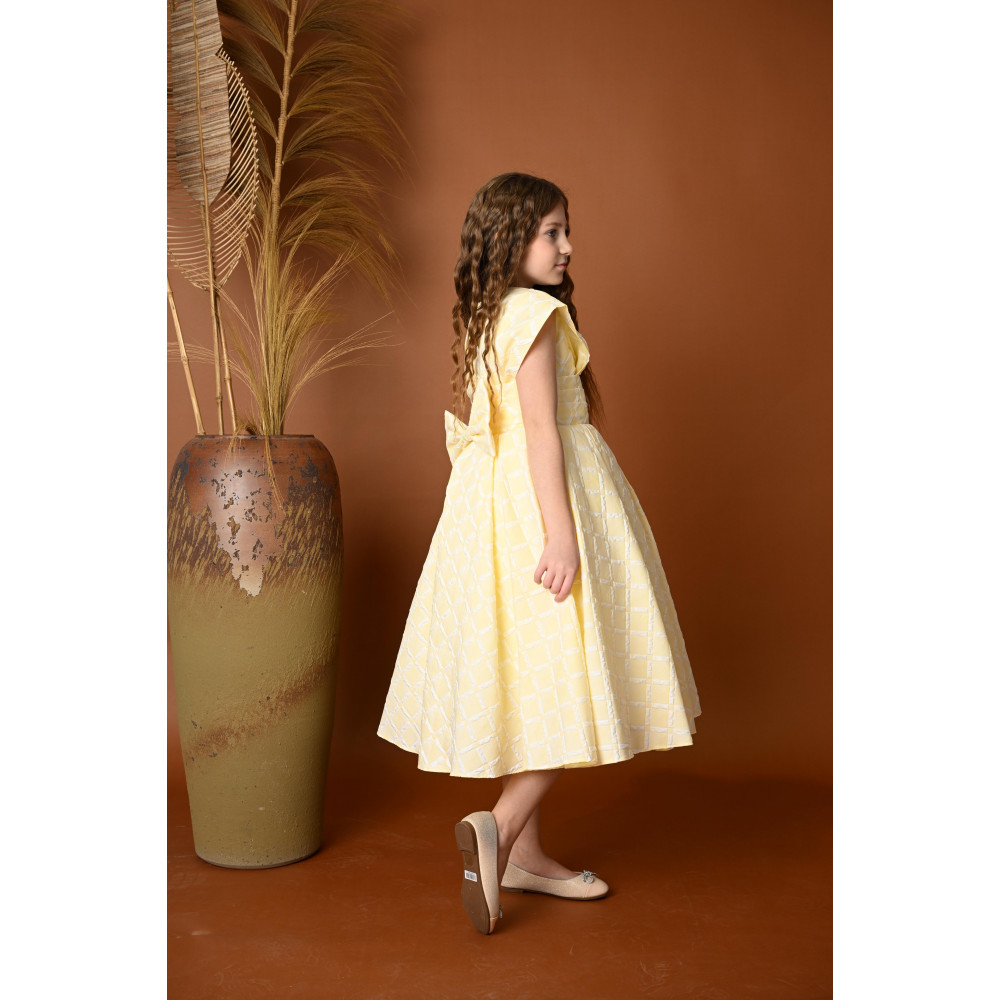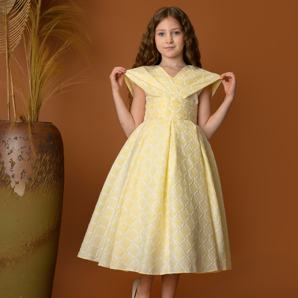 اكتشفي روعة الأناقة مع هذا الفستان الأصفر البناتي الفاخر من توتي كيدز Totikids! يتميز بتصميم كلاسيكي رائع مع ياقة مبتكرة تبرز الأكتاف بشكل جميل. القماش المزخرف بنقوش هندسية يضفي لمسة فريدة من الفخامة، بينما تمنح التنورة الواسعة للفستان شكلاً ملكيًا يجعل صغيرتك تتألق في كل مناسبة.مثالي للسهرات والمناسبات الخاصة، ليمنح طفلتك إطلالة لا تُنسى!