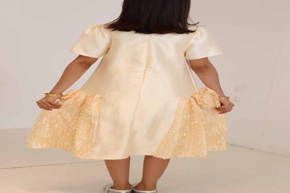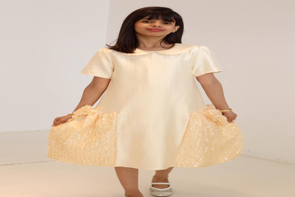 فستان أصفر مع الترتر والفينكات الجانبيه