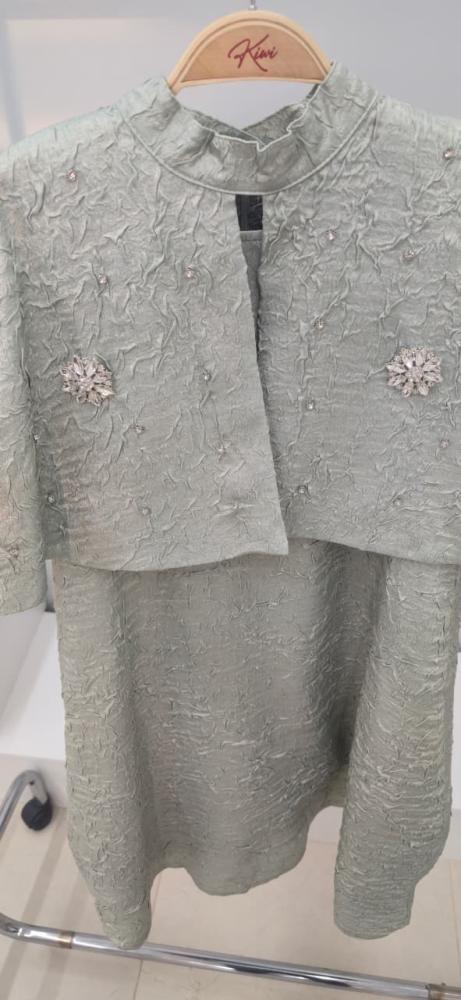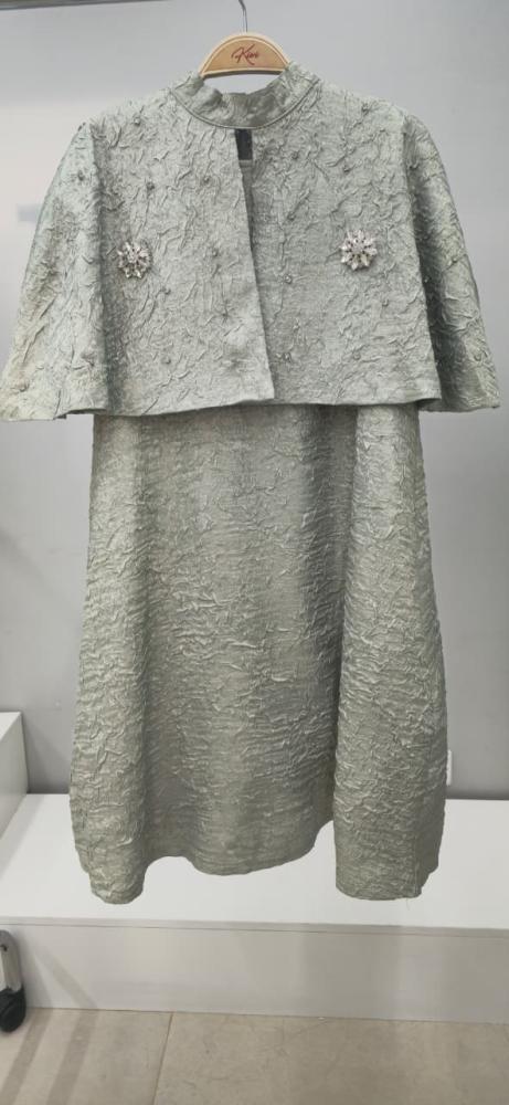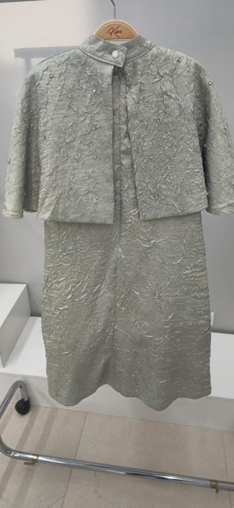 فستان اخظر كلاسيكي انيق وجميل باللؤلؤ على الصدر