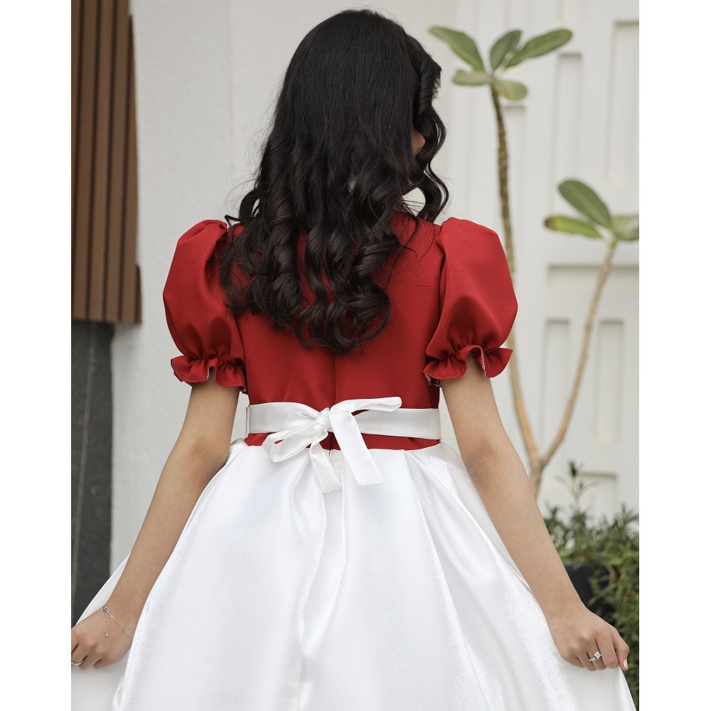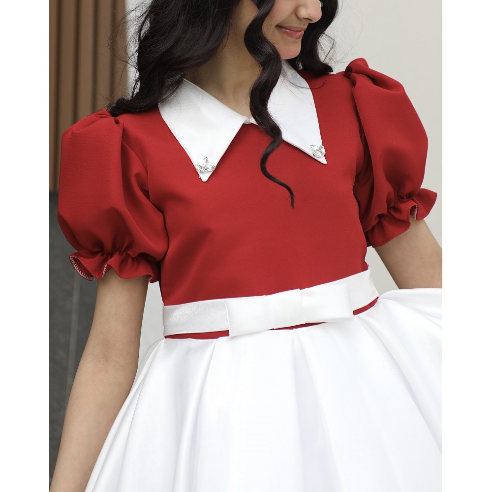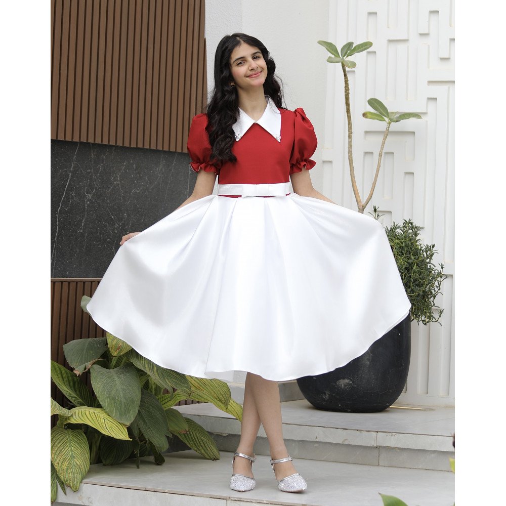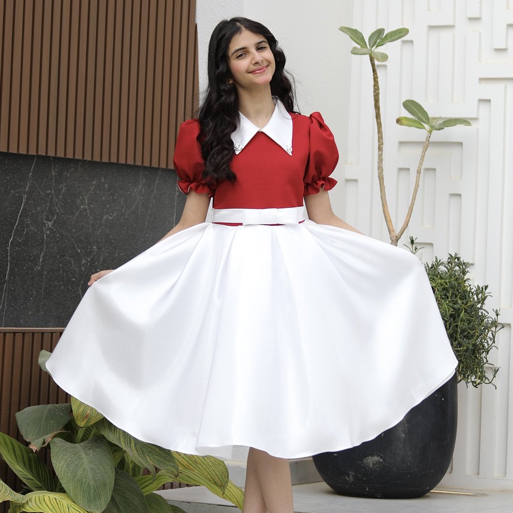 سحر التباين.. إطلالة تروي حكاية اللون والنقاء في قطعة واحدةفي عالم الموضة، التفاصيل المبتكرة هي التي تصنع الفرق، وهذا الفستان هو تجسيد حي للأناقة الذكية التي تجمع بين مظهر القطعتين وراحة الفستان الواحد. نقدم لكِ الموديل 1162، تحفة فنية مصممة لتمنح أميرتك الصغيرة حضوراً درامياً ساحراً. يجمع الفستان بين صدرية (توب) بلون أحمر ملكي، وتنورة بيضاء ناصعة مدمجة ببراعة لتبدو وكأنها طقم فاخر منسق بعناية. صُمم هذا الفستان ليبرز جمال ملامح طفلتك من خلال ياقة "الدلعة" المبتكرة المرصعة ببريق فص لامع، ليخلق توازناً بصرياً يخطف الأنظار في كل مناسبة. لماذا هذا الفستان هو الخيار الأذكى لمناسبات طفلتك؟لأنه يجمع بين الهندسة الدقيقة للتصميم وسحر الألوان الكلاسيكية:تصميم "قطعة مدمجة" (Two-in-One look): يتميز الفستان بكونه قطعة واحدة سهلة الارتداء، لكنها تعطي إيحاءً بأنها تنورة بيضاء منفصلة مع توب أحمر، مما يوفر إطلالة مرتبة وأنيقة جداً دون عناء التنسيق.رقبة "دلعة" مرصعة بـ "فص" لامع: تأتي الياقة بتصميم "دلعة" انسيابي يبرز جمال العنق، ويزينها فص كريستالي لامع يتوسطها ليضفي لمسة من الفخامة والبريق الملكي حول الوجه.تباين ألوان ملكي: التناغم بين الجزء العلوي (الأحمر أو العودي) والجزء السفلي الأبيض يمنح الفستان طابعاً فريداً يجمع بين قوة الحضور وصفاء الإطلالة، مما يجعله مثالياً كـ فستان بناتي للعيد.أكمام منفوشة وراقية: يتميز الفستان بأكمام مصممة بحرفية تمنح الأكتاف حجماً ملكياً وتضيف لمسة من الدلال على الإطلالة العامة.لونان يفيضان بالهيبة: متوفر بـ الأحمر الصريح للبهجة، والعودي الفاخر للهيبة الأرستقراطية، وكلاهما ينسجم بشكل مذهل مع بياض الجزء السفلي.جودة تليق بلحظات لا تُنسى نحن في "توتي كيدز" نؤمن أن التميز يبدأ من جودة التنفيذ. هذا الفستان مصنوع بحرفية عالية جداً، من أقمشة فاخرة تحافظ على رونقها وألوانها الزاهية، مع خياطة متقنة تضمن بقاء الفص اللامع والتنورة المدمجة محافظة على شكلها الفخم مهما تعددت مرات الارتداء.امنحيها إطلالة تشرق بـالأحمر ونقاء الأبيض! اجعلي من إطلالة أميرتك في المناسبة القادمة ذكرى لا تُمحى بقطعة تجمع بين الابتكار والترف.✨ اطلبيه الآن (موديل 1162) باللون المفضل لأميرتك ودعيها تتألق بجمال لا يقاوم! ✨ شاركينا إطلالتها الساحرة!يسعدنا دائماً رؤية أميراتكم يتألقن بتصاميمنا. ندعوكِ لمشاركة صورها وتقييمك للمنتج، فرأيك هو مصدر إلهامنا الدائم لنقدم الأفضل.خدماتنا: نقدم لكِ تجربة تسوق ممتعة مع شحن سريع وموثوق، وسياسة استبدال واسترجاع مرنة لضمان رضاكِ الكامل.