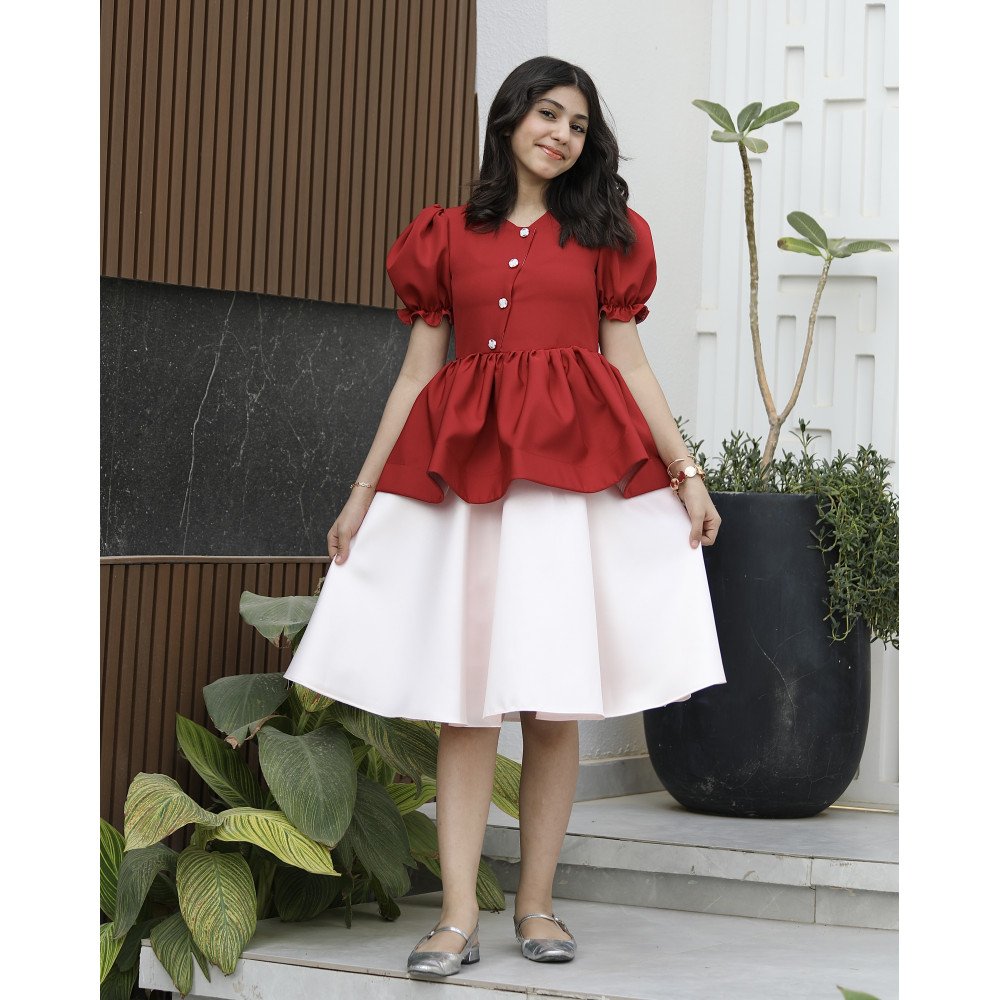 سحر البيبلوم.. حين تعانق الجرأة رقة الألوانفي عالم الموضة، التفاصيل المبتكرة هي التي تصنع الفرق، وهذا الفستان هو تجسيد حي للأناقة العصرية الراقية. نقدم لكِ الموديل 1163، قطعة فنية تجمع بين قوة اللون الأحمر الصريح ونعومة اللون الوردي الفاتح في قصة "البيبلوم" الشهيرة. صُمم هذا الفستان ليمنح أميرتك الصغيرة حضوراً درامياً ساحراً، حيث تلتقي أزرار الزينة الكلاسيكية على الصدر مع الطبقة السفلية المتباينة لتخلق توازناً بصرياً يخطف الأنظار. إنه ليس مجرد فستان، بل هو قطعة من الذوق الرفيع مصممة لتجعل من طفلتك نجمة متألقة في كل مناسبة. لماذا هذا الفستان هو خيارك الأرقى لموسم الاحتفالات؟لأنه يجمع بين التصميم الهندسي المبتكر وأدق التفاصيل الجمالية:قصة "البيبلوم" (Peplum) العصرية: يتميز الفستان بتصميم البيبلوم الأنيق، حيث تبرز قطعة قماش إضافية من الأسفل باللون الوردي الفاتح، مما يمنح الفستان حجماً جمالياً وحركة انسيابية مميزة تليق بالأميرات.أزرار زينة ملكية: يزدان الصدر من الأعلى بصف من أزرار الزينة الأنيقة، التي تضفي لمسة من الترتيب والفخامة الكلاسيكية وتبرز دقة وحداثة التصميم.تباين ألوان ساحر: التناغم بين الأحمر (أو العودي) في الأعلى والوردي الفاتح في الأسفل يخلق إطلالة حيوية ومنعشة تناسب تماماً أجواء العيد والمهرجانات.ثلاثة ألوان ملكية: سواء اخترتِ الأحمر المشرق للبهجة، أو العودي الفاخر للهيبة، أو الليموني العصري للتميز، فإن كل لون يحكي قصة جمال مختلفة بلمسة الوردي الفاتح.راحة وأناقة في آن واحد: يجمع التصميم بين المظهر المرتب والراحة المطلقة، مما يتيح لأميرتك الحركة واللعب بكل ثقة وأناقة طوال وقت الحفل.جودة تليق بلحظات لا تُنسى نحن في "توتي كيدز" نؤمن أن التميز يبدأ من جودة التنفيذ. هذا الفستان مصنوع بحرفية عالية من أقمشة فاخرة تحافظ على رونقها وألوانها الزاهية، مع خياطة متقنة تضمن بقاء طبقة البيبلوم وأزرار الزينة محافظة على شكلها الفخم مهما تعددت مرات الارتداء. امنحيها إطلالة تتألق بـسحر البيبلوم والألوان!اجعلي من إطلالة أميرتك في العيد القادم لوحة فنية لا تُنسى بقطعة تجمع بين الابتكار والترف.✨ اطلبيه الآن (موديل 1163) باللون المفضل لأميرتك ودعيها تشرق بجمال لا يقاوم! ✨ شاركينا إطلالتها الساحرة!يسعدنا دائماً رؤية أميراتكم يتألقن بتصاميمنا التي تعكس ذوقكم الرفيع. ندعوكِ لمشاركة صورها وتقييمك للمنتج، فرأيك هو مصدر إلهامنا الدائم لنقدم الأفضل.خدماتنا: نقدم لكِ تجربة تسوق ممتعة مع شحن سريع وموثوق، وسياسة استبدال واسترجاع مرنة لضمان رضاكِ الكامل.
