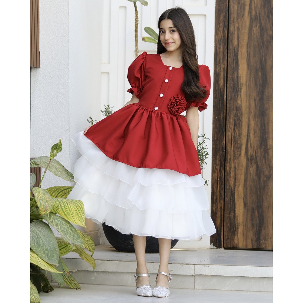 سحر التباين.. حين تعانق بتلات الورد نعومة سحاب التلهناك إطلالات تُصمم لتصنع ذكريات لا تُنسى، وهذا الفستان هو القطعة التي ستحول أميرتك الصغيرة إلى نجمة الحفل المتوجة. نقدم لكِ الموديل 1171، تصميم يجمع بين قوة اللون الأحمر الصريح ونقاء طبقات التل الأبيض التي تنسدل كالسحاب. يبرز جمال الفستان من خلال الوردة الجانبية التي تتفتح على الخصر لتحدد جمال القصة، وتكتمل اللوحة بالأزرار اللامعة التي تضفي لمسة من الوقار الأرستقراطي. إنه ليس مجرد فستان، بل هو تجسيد لروح الاحتفال السعيد في قطعة فنية تليق بجمال طفلتك. لماذا هذا الفستان هو قطعة الاستثناء في خزانة أميرتك؟لأنه يجمع بين التصميم الدرامي المبتكر وأدق التفاصيل الجمالية:وردة الخصر الفاخرة: يزدان الخصر بوردة "هاند ميد" كبيرة ومنسقة بإتقان من نفس لون القماش، تمنح الفستان طابعاً أنثوياً رقيقاً وتكون النقطة المحورية للجمال.طبقات التل الأبيض المنفوشة: يتميز الجزء السفلي بـ طبقات متعددة من التل (Tiered Tulle) الأبيض الناصع، مما يمنح الفستان حجماً ملكياً (نفشة) تعشقها الفتيات وتجعلهن يتألقن كأميرات الأساطير.أزرار زينة ملكية: يتوسط الصدر صف من الأزرار اللامعة والمنسقة، التي تضفي لمسة من الترتيب والفخامة الكلاسيكية على الإطلالة العامة.ثلاثة ألوان تخطف الأنظار: اختاري ما يناسب شخصية طفلتك؛ سواء كان الأحمر المشرق للبهجة، أو العودي الفاخر للهيبة الملكية، أو الليموني لإشراقة صيفية فريدة.قصة مريحة وفخمة: يجمع التصميم بين المظهر المنفوش والراحة المطلقة، بفضل البطانة الناعمة والأقمشة المختارة بعناية لتكون لطيفة على بشرة الأطفال وتسمح لهم بالحركة واللعب.جودة تليق بلحظات لا تُنسى نحن في "توتي كيدز" نؤمن أن التميز يبدأ من جودة التنفيذ. هذا الفستان مصنوع بحرفية عالية جداً، مع تقنيات خياطة تضمن ثبات طبقات التل وبقاء الوردة والأزرار محافظة على رونقها الفاخر مهما تعددت مرات الارتداء، لتبقى القطعة ذكرى خالدة لأجمل الأوقات.امنحيها إطلالة تشرق بـسحر الورد والتل! اجعلي من إطلالة أميرتك في العيد القادم لوحة فنية لا تُنسى بقطعة تجمع بين الفن والترف.✨ اطلبيه الآن (موديل 1171) باللون المفضل لأميرتك ودعيها تشرق بجمال لا يقاوم! ✨ شاركينا إطلالتها الساحرة!يسعدنا دائماً رؤية أميراتكم يتألقن بتصاميمنا التي تعكس ذوقكم الرفيع. ندعوكِ لمشاركة صورها وتقييمك للمنتج، فرأيك هو مصدر إلهامنا الدائم لنقدم الأفضل.خدماتنا: نقدم لكِ تجربة تسوق ممتعة مع شحن سريع وموثوق، وسياسة استبدال واسترجاع مرنة لضمان رضاكِ الكامل.