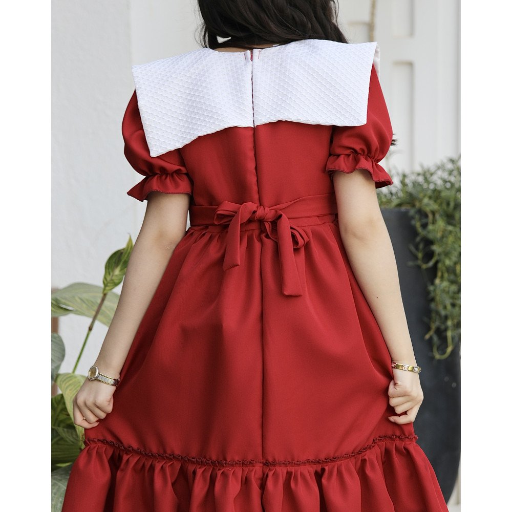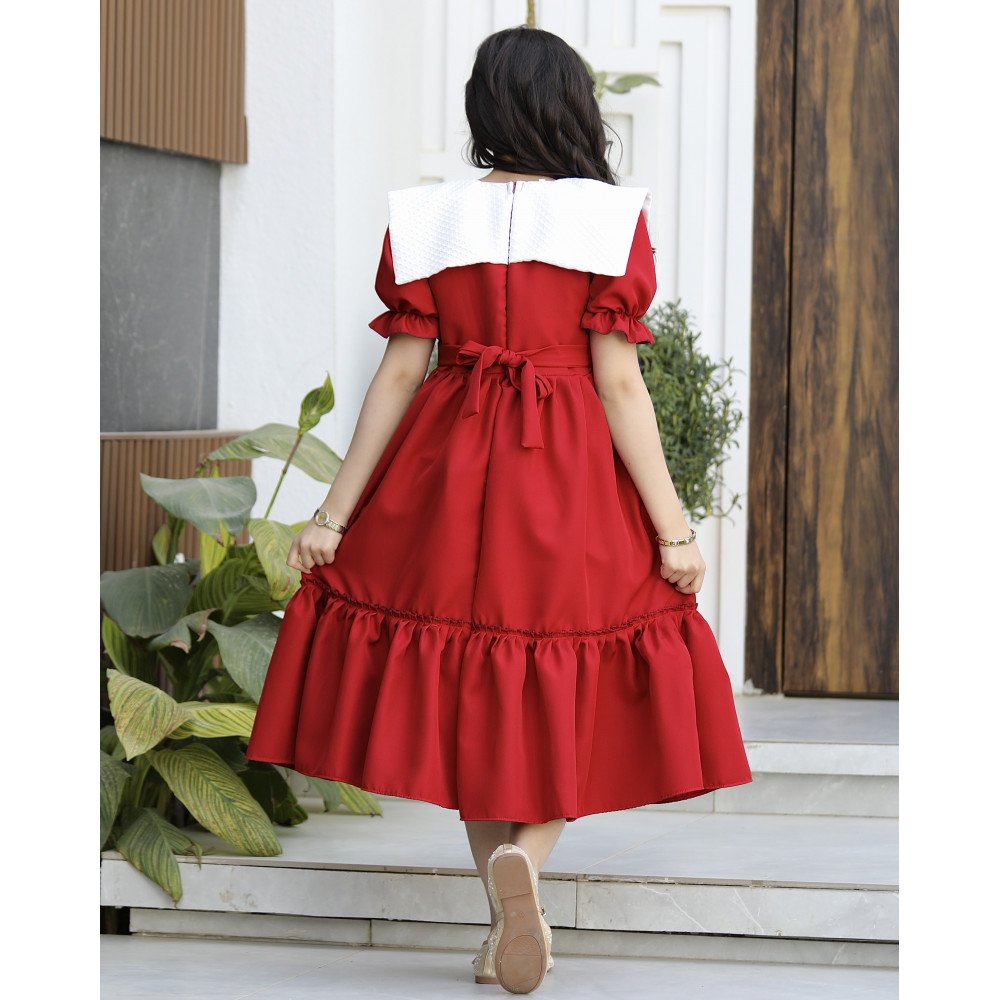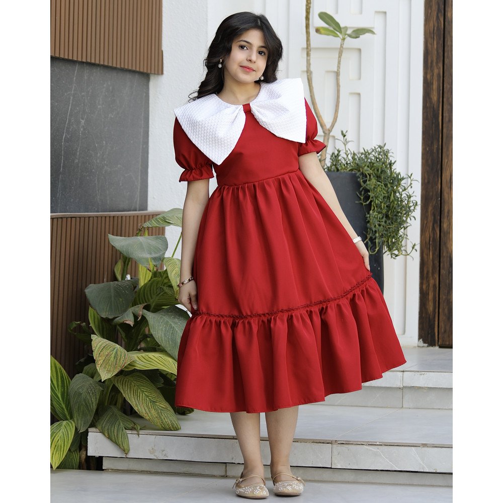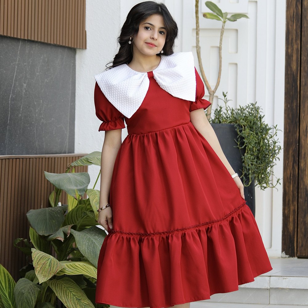 سحر الحضور.. حين تعانق الدراما نقاء براءة الأميراتهناك فساتين صُممت لتروي حكاية من الأناقة، وهذا الفستان هو الفصل الأجمل في تلك الحكاية. نقدم لكِ الموديل 1172، قطعة فنية فريدة تجمع بين قوة اللون الأحمر الصريح وفخامة الياقة البيضاء المبتكرة التي تأتي على شكل فيونكة ضخمة تنسدل بنعومة ملكية على الأكتاف لتصل إلى الخلف. صُمم هذا الفستان ليمنح أميرتك الصغيرة حضوراً درامياً ساحراً يفيض بالثقة والتميز، مع لمسة كلاسيكية من الكشكشة السفلية التي تكتمل بها لوحة الجمال. إنه ليس مجرد فستان، بل هو "بيان أناقة" صُمم لتكون طفلتك هي النجمة المتألقة في كل محفل. لماذا هذا الفستان هو قطعة الاستثناء في خزانة أميرتك؟لأنه يجمع بين التصميم الهندسي المبتكر وأدق التفاصيل الجمالية:ياقة الفيونكة الأيقونية: يتميز العنق بتصميم ياقة بيضاء عريضة جداً ومبتكرة على شكل فيونكة منسدلة (Giant Bow Collar) تغطي الأكتاف، مما يضفي لمسة من الفخامة الأرستقراطية غير المسبوقة.كشكشة سفلية مرتبة: يزدان الفستان قبل نهايته بلمسة من الكشكشة المتقنة (Ruffles)، التي تمنح القصة حركة انسيابية ساحرة عند المشي وتزيد من حيوية وفخامة التصميم.ثلاثة ألوان ملكية: اختاري اللون الذي يعكس شخصية أميرتك؛ الأحمر الصريح للجرأة والبهجة، أو العودي الفاخر للهيبة الملكية، أو الليموني العصري لإشراقة لا تُنسى.قصة انسيابية مريحة: يجمع التصميم بين المظهر الفخم والراحة المطلقة، بفضل القماش الذي يسمح بالحركة واللعب بكل ثقة مع الحفاظ على القوام المنفوش والراقي.مثالي للأعياد والمناسبات الكبرى: بفضل تفاصيله الواضحة والمتباينة، يعد هذا الموديل الخيار الأول للأمهات اللواتي يرغبن في صور تذكارية استثنائية لأميراتهن.جودة تليق بلحظات لا تُنسى نحن في "توتي كيدز" نؤمن أن التميز يبدأ من جودة التنفيذ. هذا الفستان مصنوع بحرفية عالية جداً، من أقمشة فاخرة تحافظ على رونقها وشكل الياقة المنفوش، مع خياطة متقنة تضمن بقاء التفاصيل محافظة على شكلها الفخم مهما تعددت مرات الارتداء.امنحيها إطلالة تشرق بـسحر الفيونكة الملكية! اجعلي من إطلالة أميرتك في المناسبة القادمة ذكرى لا تُمحى بقطعة تجمع بين الفن والتميز.✨ اطلبيه الآن باللون المفضل لأميرتك ودعيها تتألق بجمال لا يقاوم! ✨ شاركينا إطلالتها الساحرة!يسعدنا دائماً رؤية أميراتكم يتألقن بتصاميمنا التي تعكس ذوقكم الرفيع. ندعوكِ لمشاركة صورها وتقييمك للمنتج، فرأيك هو مصدر إلهامنا الدائم لنقدم الأفضل.خدماتنا: نقدم لكِ تجربة تسوق ممتعة مع شحن سريع وموثوق، وسياسة استبدال واسترجاع مرنة لضمان رضاكِ الكامل.