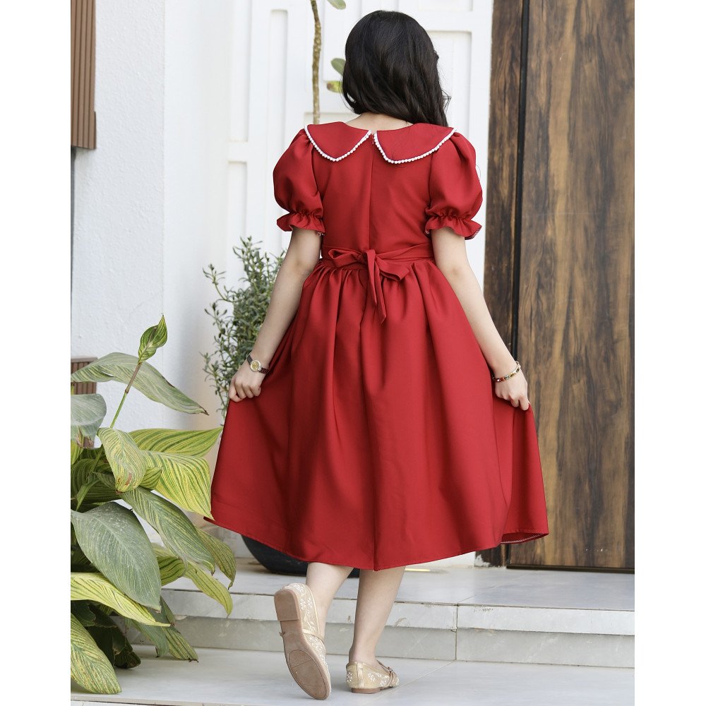 سحر الأحمر وبريق اللؤلؤ.. حين تعانق البساطة فخامة التفاصيلفي "توتي كيدز"، نعيد تعريف الأناقة الكلاسيكية بلمسات عصرية تأسر القلوب، وهذا الفستان هو تجسيد حي لذلك المفهوم. نقدم لكِ الموديل 1177، قطعة فنية تجمع بين قوة اللون الأحمر الصريح ونقاء اللؤلؤ الأبيض الذي يطوق الياقة كعقد ثمين. صُمم هذا الفستان ليمنح أميرتك الصغيرة حضوراً يفيض بالرقة والثقة، حيث تتوسط الخصر فيونكة ناعمة تضفي لمسة من الدلال، بينما تكتمل اللوحة بالأكمام المنفوشة التي تمنح الفستان طابعاً ملكياً استثنائياً. إنه ليس مجرد فستان، بل هو قطعة من البهجة صُممت لتكون جزءاً من أجمل ذكريات طفلتك في العيد وكل مناسبة سعيدة. لماذا هذا الفستان هو قطعة التميز في خزانة أميرتك؟لأنه يجمع بين التصميم الانسيابي الراقي وأدق التفاصيل الجمالية:ياقة ملكية ببريق اللؤلؤ: تتميز الياقة الدائرية (بيتر بان) بتحديد دقيق وكامل بـ حبات اللؤلؤ الأبيض اللامع، مما يضفي إشراقة فورية على وجه أميرتك ويغنيكِ عن إضافة إكسسوارات حول العنق.فيونكة الخصر الرقيقة: يزدان منتصف الخصر بفيونكة صغيرة منسقة بإتقان، تعمل كقطعة جمالية تربط بين بساطة الصدر واتساع التنورة بأسلوب أنثوي راقٍ.حزام خلفي لأناقة متكاملة: يكتمل السحر من الخلف بـ حزام أنيق يتيح لكِ ضبط المقاس بدقة، ويمنح الفستان فيونكة خلفية ساحرة تكتمل بها الإطلالة من كل الزوايا.أكمام منفوشة عصرية: تأتي الأكمام بتصميم "الباف" (Puff Sleeves) المريح الذي يضفي حجماً ملكياً عند الكتفين ويزيد من جاذبية التصميم العام.ثلاثة ألوان ملكية: سواء اخترتِ الأحمر المشرق للبهجة، أو العودي الفاخر للهيبة الملكية، أو الليموني العصري للتميز، فإن كل لون يحكي قصة جمال مختلفة.قصة انسيابية مريحة: يجمع التصميم بين المظهر المرتب والراحة المطلقة، بفضل القماش الذي يسمح بحرية الحركة واللعب بكل ثقة وأناقة.جودة تليق بلحظات لا تُنسى نحن في "توتي كيدز" نؤمن أن التميز يبدأ من جودة التنفيذ. هذا الفستان مصنوع بحرفية عالية جداً، من أقمشة فاخرة تحافظ على رونقها وألوانها الزاهية، مع خياطة متقنة تضمن ثبات اللؤلؤ وتفاصيل الخصر محافظة على شكلها الفخم مهما تعددت مرات الارتداء.امنحيها إطلالة تشرق بـبريق اللؤلؤ وسحر الأحمر! اجعلي من إطلالة أميرتك في المناسبة القادمة لوحة فنية لا تُمحى بقطعة تجمع بين الفن والترف.✨ اطلبيه الآن (موديل 1177) باللون المفضل لأميرتك ودعيها تتألق بجمال لا يقاوم! ✨ شاركينا إطلالتها الساحرة!يسعدنا دائماً رؤية أميراتكم يتألقن بتصاميمنا التي تعكس ذوقكم الرفيع. ندعوكِ لمشاركة صورها وتقييمك للمنتج، فرأيك هو مصدر إلهامنا الدائم لنقدم الأفضل.خدماتنا: نقدم لكِ تجربة تسوق ممتعة مع شحن سريع وموثوق، وسياسة استبدال واسترجاع مرنة لضمان رضاكِ الكامل.