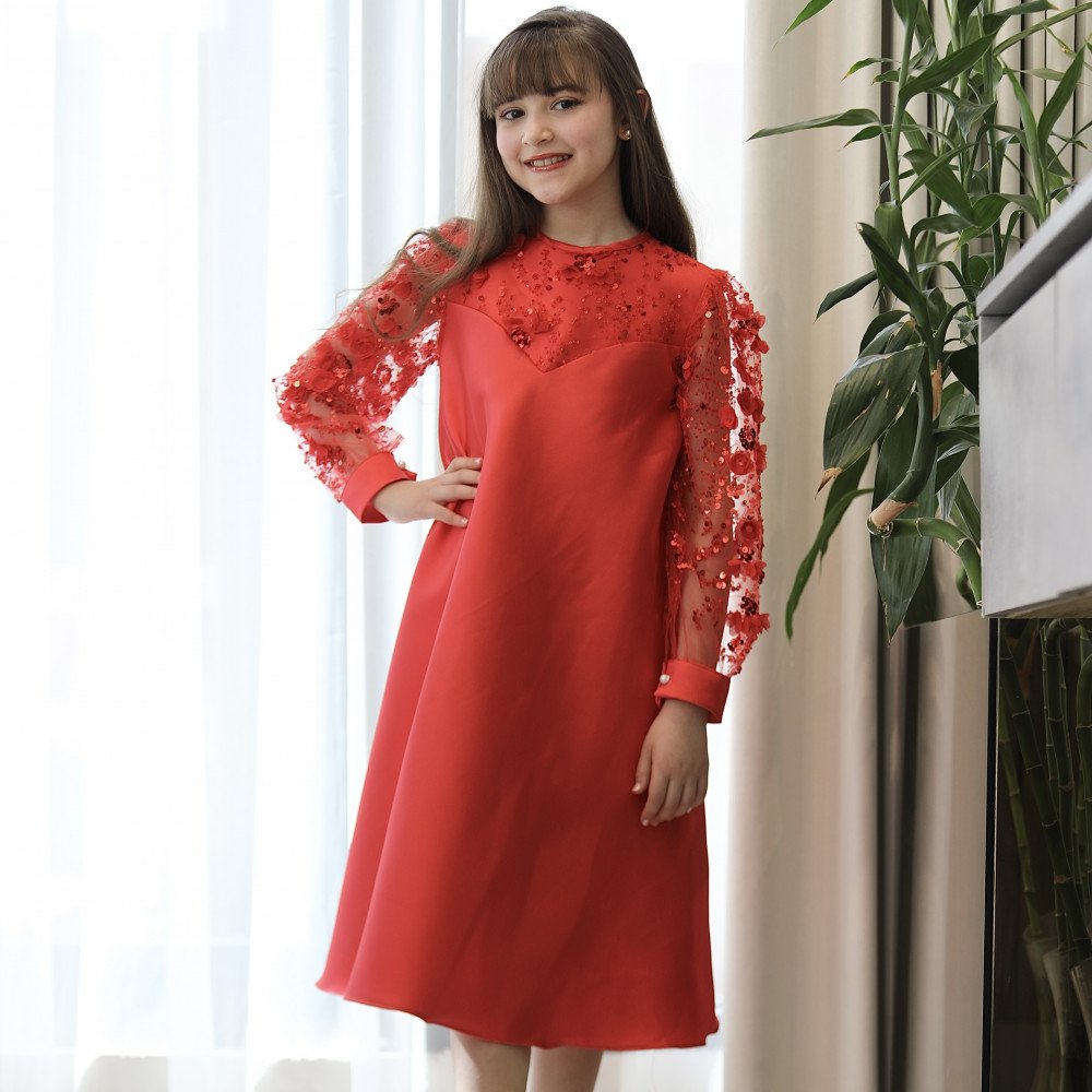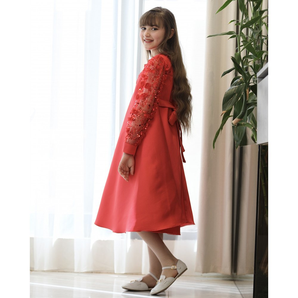 توهج الأحمر.. حين تعانق الورود الملكية شفافية الدانتيلفي عالم الأناقة الصارخة، يظل اللون الأحمر هو لغة التميز، وهذا الفستان هو القصيدة الأجمل في تلك اللغة. نقدم لكِ الموديل m3826، قطعة فنية تجمع ببراعة بين بساطة القماش السادة في الجزء السفلي وثراء الدانتيل المشغول يدوياً في الجزء العلوي. صُمم هذا الفستان ليمنح أميرتك الصغيرة حضوراً درامياً يفيض بالثقة والأنوثة، حيث تغطي الورود النافرة منطقة الصدر والرقبة وتنساب بشفافية ساحرة على الأكمام، لتخلق لوحة من الجمال تليق بأهم مناسباتها. إنه ليس مجرد فستان، بل هو قطعة من الضوء صُممت لتجعل من طفلتك نجمة الحفل المتألقة. لماذا هذا الفستان هو خيارك الأرقى للمناسبات الكبرى؟لأنه يجمع بين التصميم الدرامي المبتكر وأدق التفاصيل الجمالية:صدرية دانتيل ملكية: يتميز الجزء العلوي بقماش الدانتيل (أو التل المطرز) الشفاف المشغول بـ ورود ثلاثية الأبعاد (3D Flowers) وفصوص لامعة صغيرة، تمتد من الرقبة وحتى الصدر بأسلوب فني فاخر.أكمام شفافة مرصعة: تأتي الأكمام بتصميم شفاف يبرز جمال التطريز الوردي، وتنتهي بـ أساور حمراء سادة مع زر أنيق، مما يضفي لمسة من الترتيب والأناقة الكلاسيكية.ياقة عالية وراقية: تصميم الرقبة يأتي بياقة "ماو" قصيرة من الدانتيل المرصع، مما يغنيكِ تماماً عن استخدام أي مجوهرات ويبرز جمال الوجه بأسلوب ملائكي.تباين ذكي بين الخامات: التناغم بين الجزء العلوي الغني بالتفاصيل والجزء السفلي السادة (Plain) يمنح الفستان توازناً بصرياً مذهلاً ويبرز طول القامة ورقي التصميم.قصة انسيابية مريحة: ينسدل الفستان بقصة واسعة قليلاً توفر الراحة المطلقة وتسمح لأميرتك بالحركة واللعب بكل ثقة وأناقة طوال وقت الاحتفال.جودة تليق بلحظات لا تُنسى نحن في "توتي كيدز" نؤمن أن التميز يبدأ من جودة التنفيذ. هذا الفستان مصنوع بحرفية عالية جداً، مع بطانة داخلية ناعمة تضمن عدم ملامسة الدانتيل لبشرة طفلتك الحساسة، وتقنيات تثبيت متطورة للورود والفصوص لضمان بقائها ساطعة ومثبتة بإتقان مهما تعددت مرات الارتداء.امنحيها إطلالة تشرق بـفخامة الأحمر وسحر الورود! اجعلي من إطلالة أميرتك في المناسبة القادمة ذكرى لا تُمحى بقطعة تجمع بين الفن والترف.✨ اطلبيه الآن (موديل m3826) ودعي أميرتك الصغيرة تتألق بجمالٍ لا يقاوم! ✨ شاركينا إطلالتها الساحرة!يسعدنا دائماً رؤية أميراتكم يتألقن بتصاميمنا التي تعكس ذوقكم الرفيع. ندعوكِ لمشاركة صورها وتقييمك للمنتج، فرأيك هو مصدر إلهامنا الدائم لنقدم الأفضل.خدماتنا: نقدم لكِ تجربة تسوق ممتعة مع شحن سريع وموثوق لجميع المناطق، وسياسة استبدال واسترجاع مرنة لضمان رضاكِ الكامل.