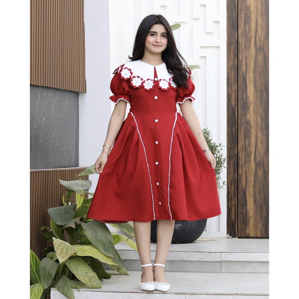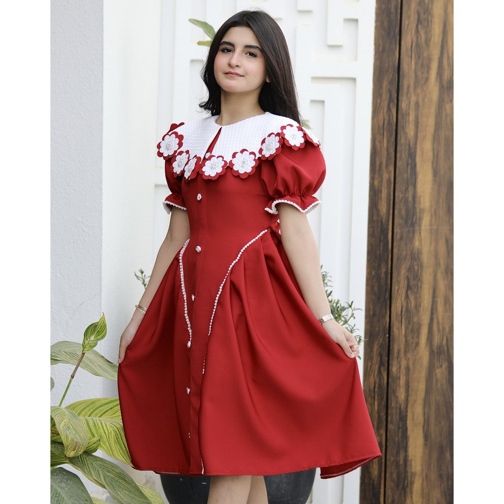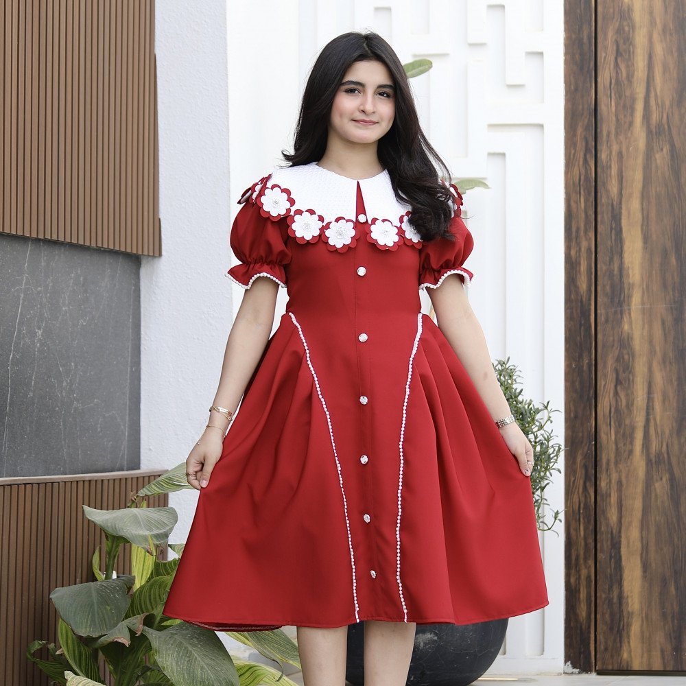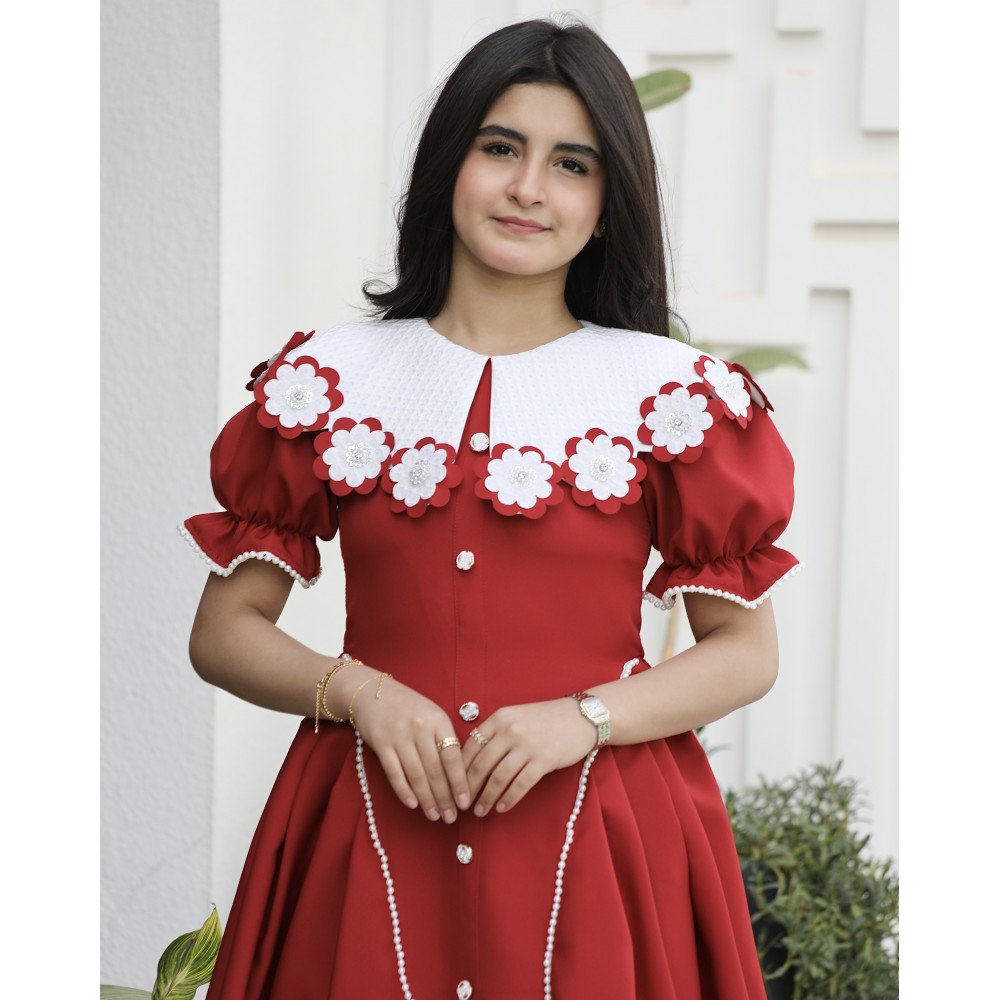 سحر الأحمر.. حين يعانق البريق تفاصيل الأميراتهناك إطلالات تُصمم لتكون عنواناً للفخامة التي لا تُنسى، وهذا الفستان هو تجسيد حي لتلك الجاذبية الملكية. نقدم لكِ الموديل 1176، قطعة فنية تجمع بين قوة اللون الأحمر الصريح وعمق اللون العودي مع بريق الفصوص اللامعة التي تملأ التصميم حياةً. يبرز جمال الفستان من خلال الياقة "الدلعة" المبتكرة المرصعة بالفصوص، والتي تتناغم ببراعة مع تفاصيل الأكمام اللامعة وصف الأزرار الأمامية الذي يروي حكاية من الأناقة الكلاسيكية. إنه ليس مجرد فستان، بل هو قطعة من الضوء صُممت لتجعل طفلتك تتألق كجوهرة في كل مناسبة. لماذا هذا الفستان هو قطعة الاستثناء في خزانة أميرتك؟لأنه يجمع بين التصميم الدرامي المبتكر وأدق التفاصيل الجمالية المرصعة:رقبة "دلعة" مرصعة بالبريق: تأتي الياقة بتصميم "دلعة" انسيابية تبرز جمال العنق، ومحددة بصف من الفصوص اللامعة التي تضفي إشراقة فورية على وجه أميرتك.تفاصيل الأكمام الفاخرة: تزدان نهاية الأكمام بلمسات من الفصوص المتراصة، مما يعطي تناغماً مذهلاً مع الياقة ويبرز دقة وحرفية الشغل اليدوي في القطعة.أزرار أمامية بلمسة ملكية: يمتد على كامل الفستان من الأمام صف من الأزرار الأنيقة، والمميز هو تحديد جوانب الأزرار بالفصوص اللامعة، مما يعطي انطباعاً بالفخامة والتميز في أدق التفاصيل.لونان يفيضان بالهيبة: اختاري بين الأحمر المشرق للبهجة الصارخة، أو العودي الفاخر (Maroon) لإطلالة أرستقراطية دافئة تناسب الأجواء الراقية.قصة انسيابية مريحة: يجمع التصميم بين المظهر الفخم والراحة المطلقة، مما يتيح لأميرتك الحركة واللعب بكل ثقة وأناقة طوال وقت الحفل.جودة تليق بلحظات لا تُنسى نحن في "توتي كيدز" نؤمن أن التميز يبدأ من جودة التنفيذ. هذا الفستان مصنوع بحرفية عالية جداً، مع تقنيات تثبيت متطورة للفصوص تضمن بقاءها ساطعة ومثبتة بإتقان مهما تعددت مرات الارتداء، ليبقى الفستان ذكرى جميلة لأجمل الأوقات السعيدة.امنحيها إطلالة تشرق بـالأحمر وسحر البريق! اجعلي من مناسبة أميرتك القادمة مهرجاناً للأناقة والجمال بقطعة تجمع بين الفن والترف.✨ اطلبيه الآن (موديل 1176) باللون المفضل لأميرتك ودعيها تشرق بجمال لا يقاوم! ✨ شاركينا إطلالتها الساحرة!يسعدنا دائماً رؤية أميراتكم يتألقن بتصاميمنا التي تعكس ذوقكم الرفيع. ندعوكِ لمشاركة صورها وتقييمك للمنتج، فرأيك هو مصدر إلهامنا الدائم لنقدم الأفضل.خدماتنا: نقدم لكِ تجربة تسوق ممتعة مع شحن سريع وموثوق، وسياسة استبدال واسترجاع مرنة لضمان رضاكِ الكامل.