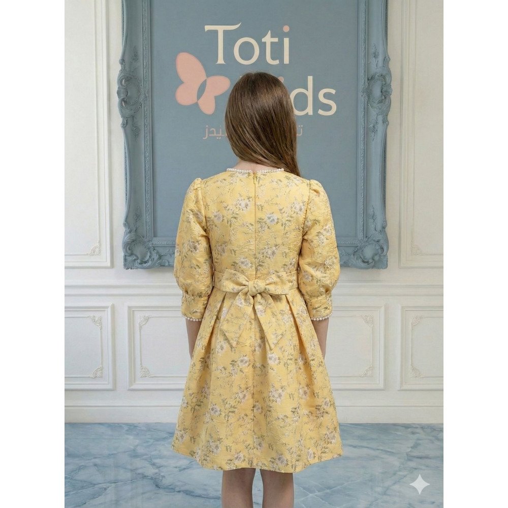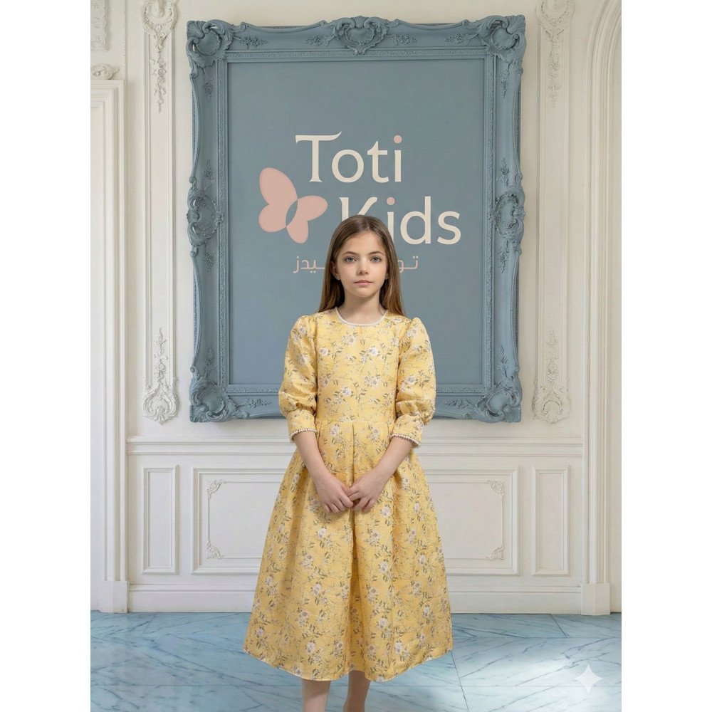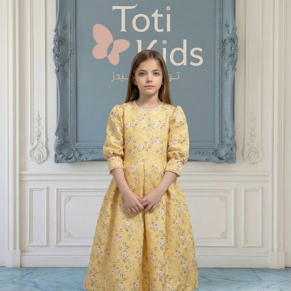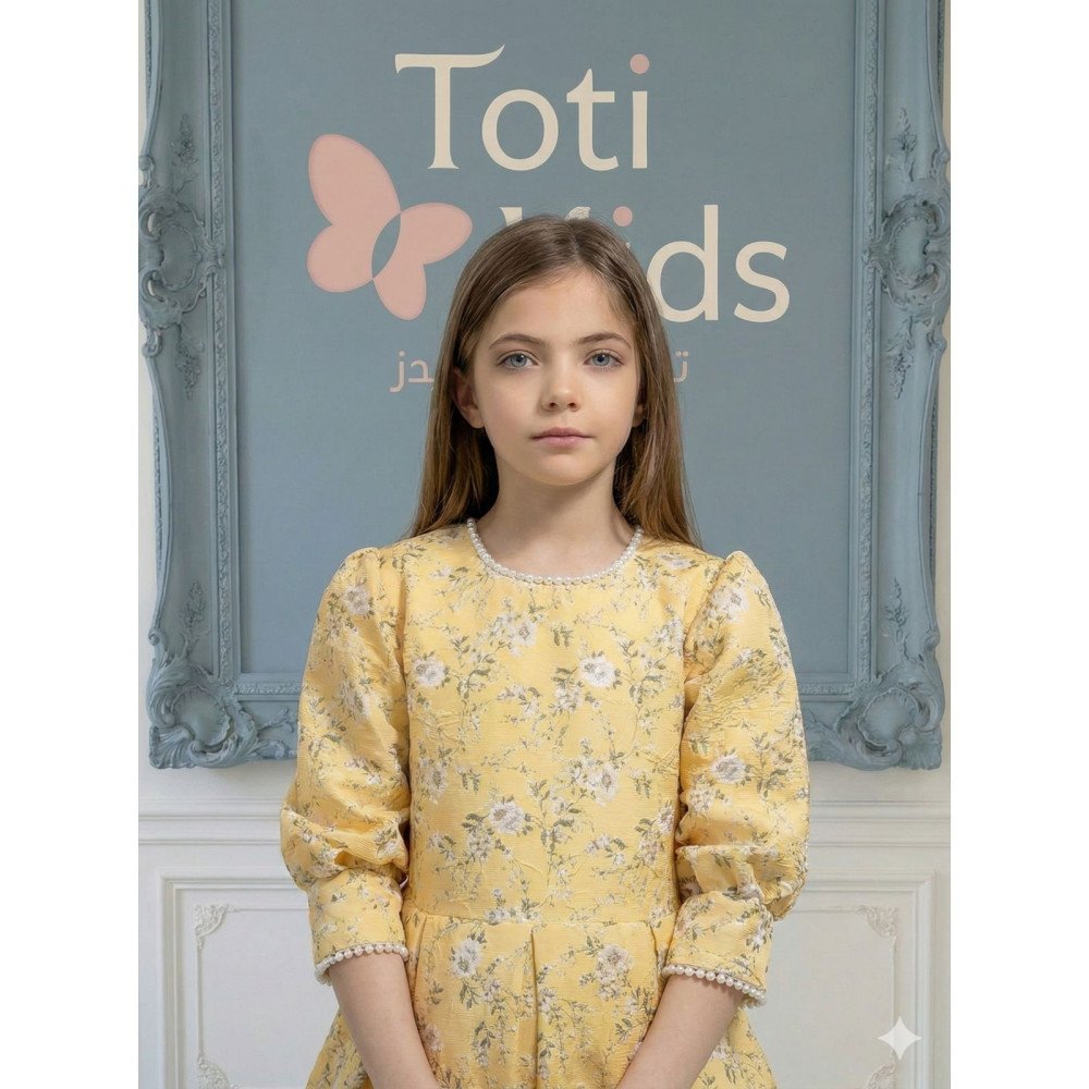 سحر الأصفر.. حين تعانق الورود بريق اللؤلؤ الملكيفي عالم الأناقة الطفولية، يظل اللون الأصفر هو لغة البهجة، وهذا الفستان هو السيمفونية الأجمل لتلك اللغة. نقدم لكِ الموديل 1130، قطعة فنية تجمع بين حيوية النقشات المشجرة ورقّة اللؤلؤ الأبيض الذي يطوق الرقبة كعقد ملكي ثمين. صُمم هذا الفستان ليمنح أميرتك الصغيرة حضوراً يفيض بالنعومة والثقة، حيث تلتقي الأكمام المنفوشة (نص كم زم) بجمال تنورة الكسرات التي تمنحها حركة انسيابية ساحرة في كل خطوة. إنه ليس مجرد فستان، بل هو قطعة من الضوء صُممت لتجعل من طفلتك أيقونة للجمال في كل محفل. لماذا هذا الفستان هو قطعة الاستثناء في خزانة أميرتك؟لأنه يجمع بين التصميم الانسيابي الفاخر وأدق التفاصيل الجمالية اليدوية:نقشة مشجرة مبهجة: يتميز الفستان بقماش فاخر بنقشات زهور رقيقة تتناغم مع اللون الأصفر المشرق، مما يمنح طفلتك إشراقة طبيعية ومنعشة تناسب تماماً أجواء الأعياد.طوق اللؤلؤ الملكي: تزدان الرقبة بصف من اللؤلؤ الأبيض الناصع، مما يضفي لمسة أرستقراطية فاخرة ويغنيكِ تماماً عن إضافة أي إكسسوارات إضافية حول العنق.أكمام "نص كم" بلمسة الزم: تأتي الأكمام بتصميم "نص كم" مع زم (Puff) يمنح الأكتاف حجماً جذاباً، وتنتهي بـ تحديد من اللؤلؤ المتقن لتكتمل فخامة التصميم.تنورة الكسرات الأنيقة: يبدأ سحر القصة من الخصر، حيث ينسدل الفستان بـ كسرات طولية متقنة (Pleats) تمنح الفستان مظهراً مرتباً وفخماً، وتسمح لأميرتك باللعب والتحرك بكل خفة وأناقة.قصة انسيابية مريحة: يجمع التصميم بين المظهر الرسمي والراحة المطلقة، بفضل البطانة الناعمة والأقمشة المختارة بعناية لتكون لطيفة على بشرة الأطفال.جودة تليق بلحظات لا تُنسى نحن في "توتي كيدز" نؤمن أن التميز يبدأ من جودة التنفيذ. هذا الفستان مصنوع بحرفية عالية جداً، مع خياطة متقنة تضمن بقاء الكسرات واللؤلؤ محافظة على شكلها الفخم ورونقها مهما تعددت مرات الارتداء، ليبقى الفستان ذكرى جميلة لأجمل الأوقات السعيدة.امنحيها إطلالة تشرق بـبهجة الأصفر وسحر اللؤلؤ! اجعلي من إطلالة أميرتك في المناسبة القادمة لوحة فنية لا تُنسى بقطعة تجمع بين الفن والترف.✨ اطلبيه الآن (موديل 1130) ودعي أميرتك الصغيرة تشرق بجمال لا يقاوم! ✨ شاركينا إطلالتها الساحرة!يسعدنا دائماً رؤية أميراتكم يتألقن بتصاميمنا التي تعكس ذوقكم الرفيع. ندعوكِ لمشاركة صورها وتقييمك للمنتج، فرأيك هو مصدر إلهامنا الدائم لنقدم الأفضل دائماً.خدماتنا: نقدم لكِ تجربة تسوق ممتعة مع شحن سريع وموثوق لجميع المناطق، وسياسة استبدال واسترجاع مرنة لضمان رضاكِ الكامل.
