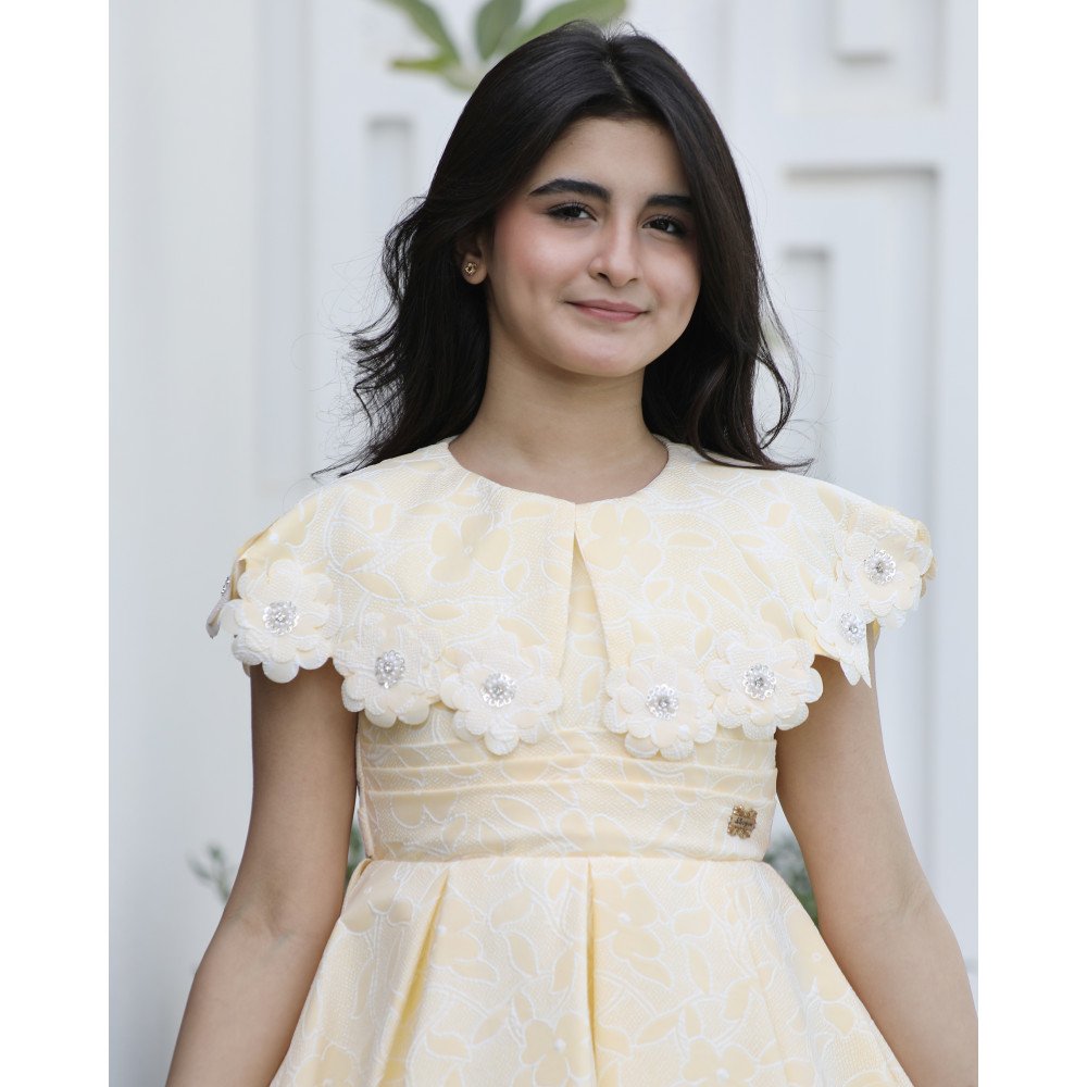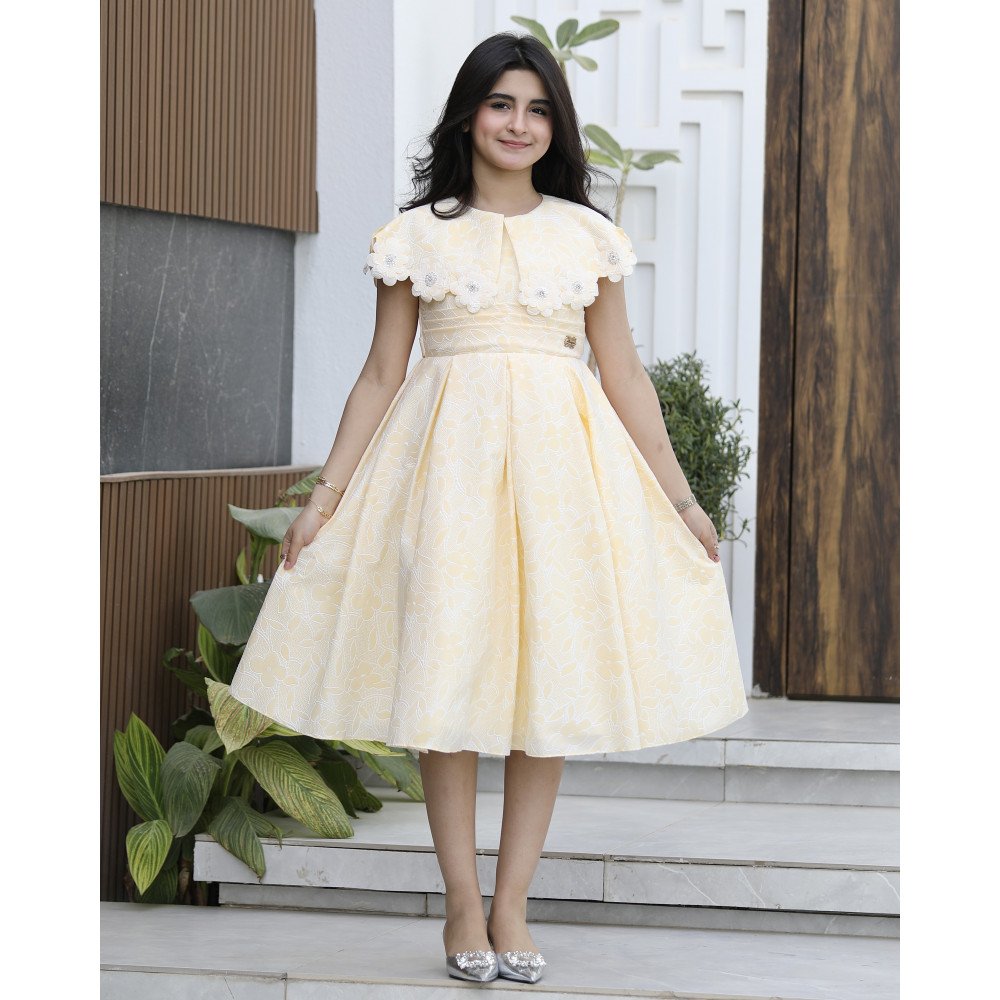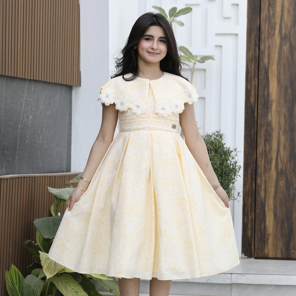 شمس الربيع.. حين تكتسي الأناقة ببهجة الطبيعةهناك إطلالات تُصمم لتنشر الفرح في كل مكان، وهذا الفستان الأصفر هو تجسيد حي لروح الصيف المشرقة. نقدم لكِ الموديل 1133، قطعة فنية تجمع بين دفء اللون الأصفر ونقاء النقشات المشجرة التي تروي حكاية بستان يتفتح. صُمم هذا الفستان ليمنح أميرتك حضوراً ساحراً يفيض بالحركة، حيث تلتقي الياقة المرصعة ببريق الفصوص اللامعة مع تصميم الخصر المبتكر ذو الطبقات، ليخلق توازناً مذهلاً بين الرقة والفخامة. إنه ليس مجرد فستان، بل هو قطعة من الضوء صُممت لتجعل طفلتك تتألق كأميرة في يومٍ احتفالي مشرق. لماذا هذا الفستان هو خيارك الأكمل لموسم الاحتفالات؟لأنه يجمع بين التصميم الهندسي المبتكر وسحر الألوان المشرقة:طبعة مشجرة مبهجة: يتميز الفستان بقماش فاخر بنقشات "مشجرة" رقيقة وألوان متناغمة، تعكس روح الطبيعة وتضفي طابعاً ربيعياً منعشاً على الإطلالة.رقبة "دلعة" مرصعة بالبريق: تأتي الياقة بتصميم "دلعة" انسيابي يبرز جمال العنق، ومحدد بالكامل بـ فصوص لامعة تضفي بريقاً يشبه المجوهرات، مما يمنح أميرتك إشراقة فورية.خصر بطبقات فنية: يتميز الخصر بتصميم الطبقات المتعددة (Tiered Waist)، مما يعطي الفستان حجماً ملكياً ومنفوشاً، ويبرز دقة وحرفية الخياطة بأسلوب أرستقراطي عصري.قصة انسيابية مريحة: يجمع التصميم بين المظهر الفخم والراحة المطلقة، مما يتيح لأميرتك الحركة واللعب بكل ثقة مع الحفاظ على مظهرها المنفوش والراقي طوال الوقت.مثالي للمناسبات السعيدة: سواء كنتِ تبحثين عن فستان بناتي للعيد أو لحفلات الزفاف والزيارات العائلية المبهجة، فإن موديل 1133 هو الخيار الذي سيجعلها محط الأنظار.جودة تليق بلحظات لا تُنسى نحن في "توتي كيدز" نؤمن بأن التميز يبدأ من جودة التنفيذ. هذا الفستان مصنوع بحرفية عالية من أقمشة باردة وناعمة تسمح لبشرة طفلتك بالتنفس في أجواء الصيف، مع خياطة متقنة تضمن ثبات الفصوص وطبقات الخصر محافظة على رونقها الفاخر مهما تعددت مرات الارتداء. امنحيها إطلالة تشرق بـسحر الأصفر والبريق!اجعلي من إطلالة أميرتك في مناسبتها القادمة ذكرى لا تُمحى بقطعة تجمع بين الفن والبهجة.✨ اطلبيه الآن (موديل 1133) ودعي أميرتك الصغيرة تتألق بسحرٍ لا يقاوم! ✨ شاركينا إطلالتها الساحرة!يسعدنا دائماً رؤية أميراتكم يتألقن بتصاميمنا التي تعكس ذوقكم الرفيع. ندعوكِ لمشاركة صورها وتقييمك للمنتج، فرأيك هو مصدر إلهامنا الدائم لنقدم الأفضل.خدماتنا: نقدم لكِ تجربة تسوق ممتعة مع شحن سريع وموثوق، وسياسة استبدال واسترجاع مرنة لضمان رضاكِ الكامل.