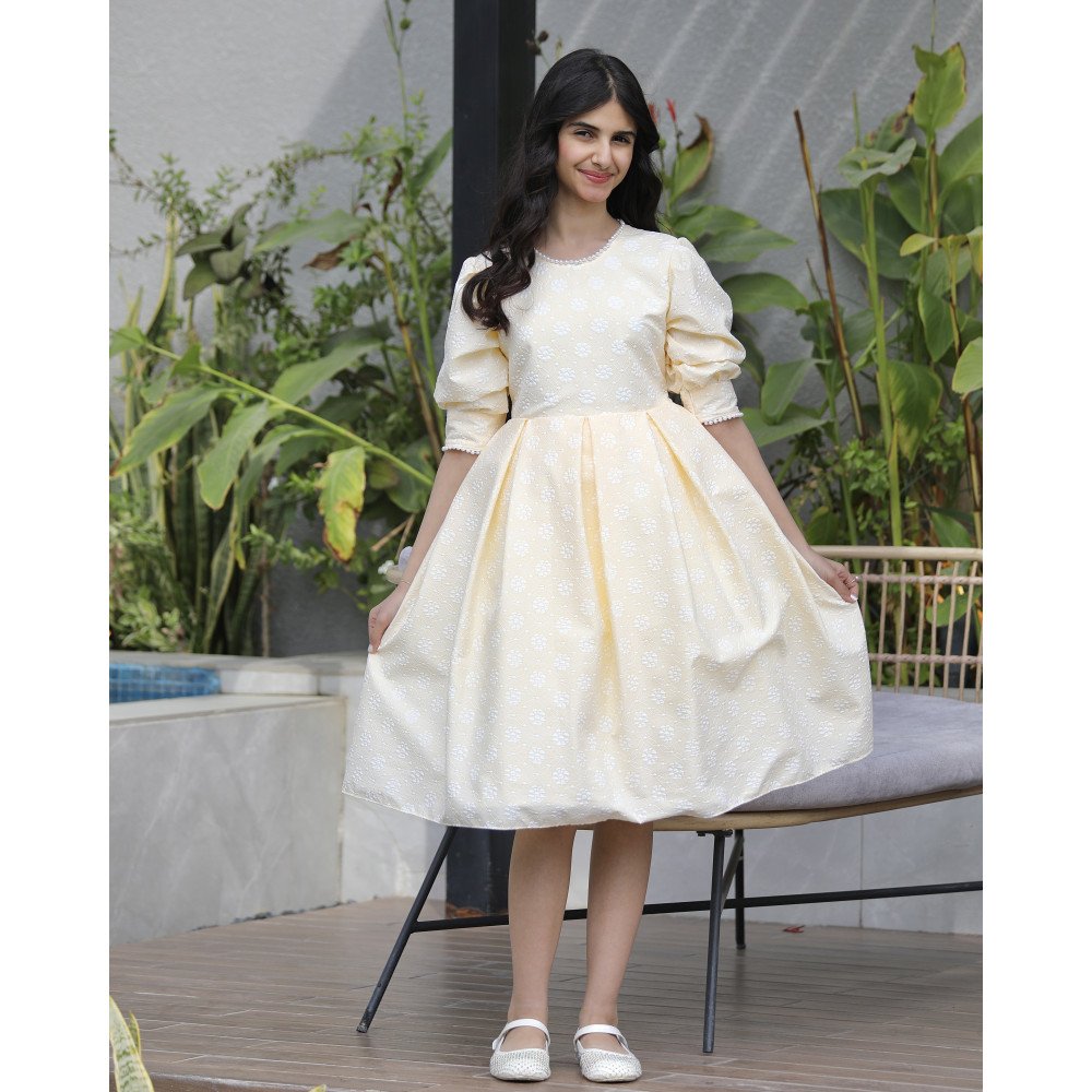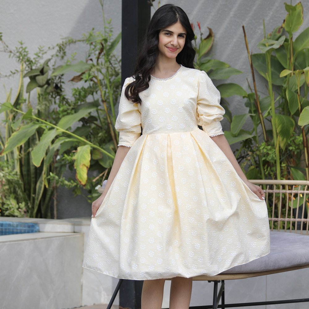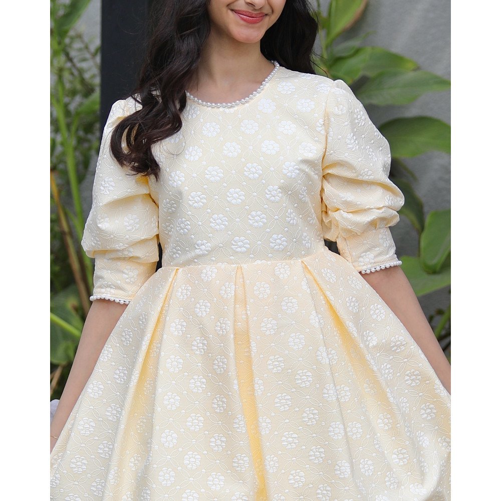 إشراقة الصيف.. حين تتعانق الورود مع بريق النجومهناك إطلالات تمنح طفلتك شعوراً بالبهجة بمجرد ارتدائها، وهذا الفستان هو تجسيد حي لتلك السعادة. نقدم لكِ الموديل 1137، قطعة فنية تجمع بين دفء اللون الأصفر المشرق ورقة نقشات الورود التي تغطي الفستان كحديقة غنّاء. صُمم هذا الفستان ليكون عنواناً للأناقة الصيفية الراقية، حيث يلتقي جمال الطبيعة الموردة ببريق الفصوص اللامعة التي تزين الرقبة والأكمام، ليمنح أميرتك حضوراً لافتاً يفيض بالحيوية والترف. إنه ليس مجرد فستان، بل هو قطعة من الضوء مصممة لتجعل من كل مناسبة ذكرى مشرفة. لماذا هذا الفستان هو الخيار الأكثر إشراقاً لأميرتك؟لأنه يجمع بين حيوية اللون وتفاصيل الفخامة اليدوية:لون أصفر مبهج: يتميز الفستان بلونه الأصفر المشرق الذي يعكس روح التفاؤل، مع طبعات ورود منسجمة تضفي طابعاً ربيعياً ساحراً.ياقة مرصعة بالجمال: تأتي الرقبة بتصميم أنيق ومحدد بصف من الفصوص اللامعة التي تضفي بريقاً يشبه المجوهرات، مما يغنيكِ عن إضافة أي إكسسوارات حول العنق.أكمام فنية بتفاصيل لامعة: أكمام الفستان مصممة بعناية وتنتهي بلمسة من الفصوص المتراصة، مما يعطي تناغماً مذهلاً مع الياقة ويبرز دقة العمل اليدوي في القطعة.قصة انسيابية راقية: يتميز الفستان بقصة مريحة وفخمة في آن واحد، تضمن لأميرتك حرية الحركة واللعب مع الحفاظ على مظهرها المرتب والأنيق طوال الوقت.مثالي لجميع المناسبات السعيدة: سواء كان الاحتفال بعيد أو مناسبة عائلية خاصة، فإن هذا الفستان يضمن بقاء طفلتك في قمة أناقتها وإشراقها.جودة تليق بلحظات لا تُنسى نحن في "توتي كيدز" نضع الجودة في مقدمة أولوياتنا. هذا الفستان مصنوع بحرفية عالية من أقمشة باردة وناعمة تسمح لبشرة طفلتك بالتنفس في أجواء الصيف، مع خياطة متقنة تضمن ثبات الفصوص واللون الأصفر الزاهي حتى مع الاستخدام المتكرر. امنحيها إطلالة تشرق بـسحر الورود والبريق!اجعلي من إطلالة أميرتك في مناسبتها القادمة لوحة فنية لا تُنسى.✨ اطلبيه الآن (موديل 1137) ودعيها تتألق بجمال الأصفر الفاخر! ✨ شاركينا إطلالتها المشرقة!يسعدنا جداً أن نرى أميراتكم يتألقن بهذا التصميم الاستثنائي. ندعوكِ لمشاركة صورها وتقييمك للمنتج، فرأيك هو مصدر إلهامنا الدائم.خدماتنا: نقدم لكِ تجربة تسوق ممتعة مع شحن سريع وموثوق، وسياسة استبدال واسترجاع مرنة لضمان رضاكِ الكامل.