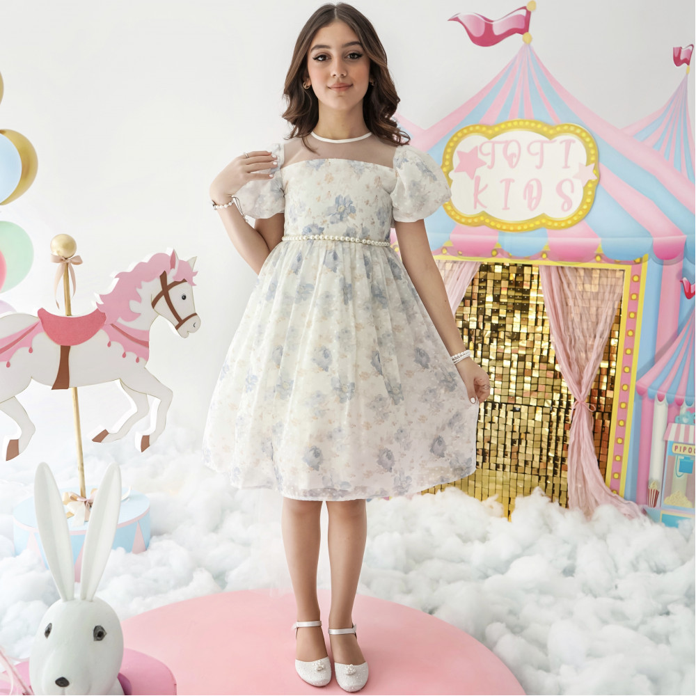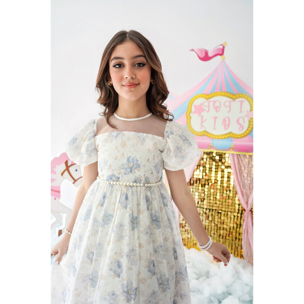 إطلالة من وحي الأحلام.. قطعة من سماء الصيففي عالم من الألوان الهادئة والتصاميم الناعمة، يبرز هذا الفستان كقطعة من الخيال. نقدم لكِ تحفة فنية تجسد جمال الزهور الرقيقة التي تتراقص على قماش شفاف، لتمنح أميرتك إطلالة ملائكية حالمة. صُنع من طبقات الأورجانزا التي تنسدل بخفة، ومزين بنقوش زهور باللون الأزرق الهادئ، ليروي قصة من النعومة والبراءة. كل تفصيلة فيه، من الياقة الشفافة المرصعة باللؤلؤ إلى الأكمام المنفوشة، مصممة لتجعل من طفلتك أيقونة للرقة والجمال. لماذا هذا الفستان هو قطعة الصيف الحالمة؟لأنه يجمع بين التصميم المبتكر، الجودة العالية، والتفاصيل التي تسرق القلوب.تصميم حالم ومبتكر: يتميز الفستان بياقة شفافة من التل مرصعة بحبات اللؤلؤ الناعمة، مع أكمام قصيرة منفوشة تضفي لمسة من الرومانسية على التصميم.قماش الأورجانزا المورد: صُنع هذا الفستان البناتي من الأورجانزا الموردة بنقشة زهور باللون الأزرق، مما يمنحه مظهرًا فاخرًا وخفيفًا ومثاليًا للمناسبات الصيفية.خصر محدد بأناقة: يزدان الخصر بشريط رفيع مرصع باللؤلؤ، يبرز جمال القصة ويضيف لمسة من الفخامة المتكاملة مع الياقة.مثالي لكل المناسبات السعيدة: سواء كنتِ تبحثين عن فستان بناتي للعيد بتصميم ناعم أو لإطلالة مميزة في حفلات أعياد الميلاد، هذا التصميم هو خيارك الأمثل. جودة تلمسينها في كل خيط من 1 - 18 سنة ✨ اطلبيه الآن ودعي أميرتك تتألق بسحر الطبيعة الخلاب! ✨